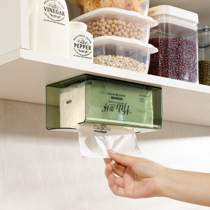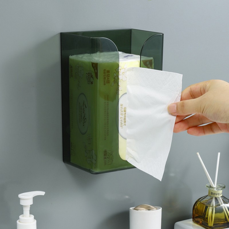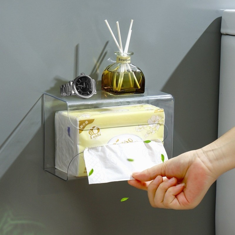 กล่องทิชชู่ติดผนัง การเจาะ-ฟรี กล่องกระดาษทิชชูห้องน้ําในครัวเรือนห้องน้ําห้องครัวผ้าเช็ดปากกล่องเก็บโปร่งใส