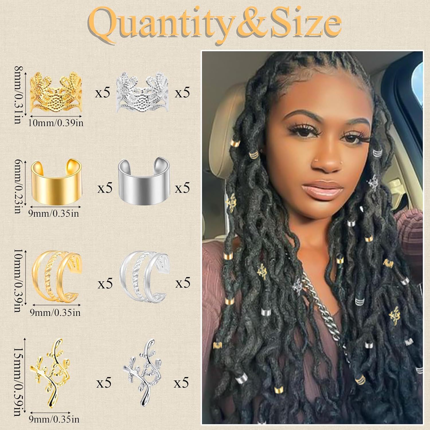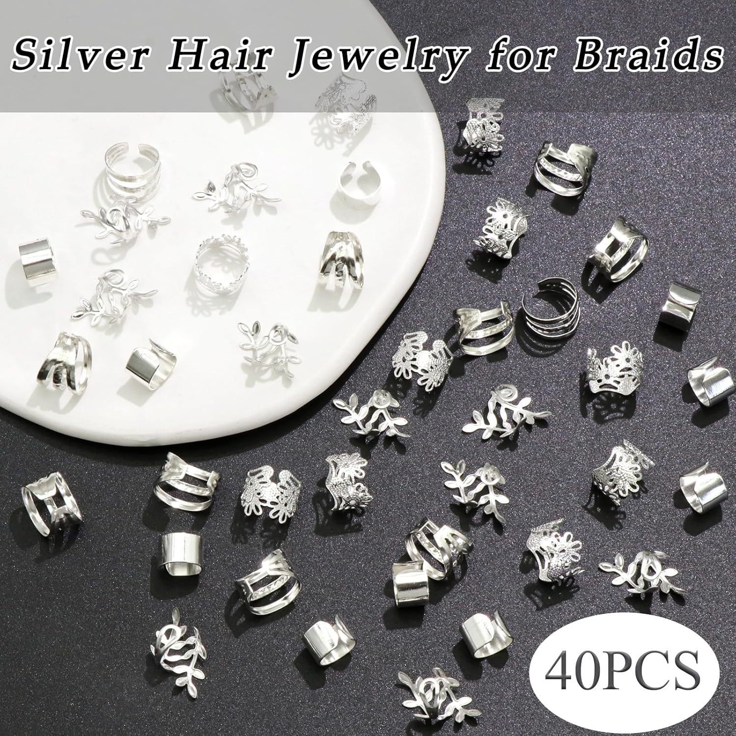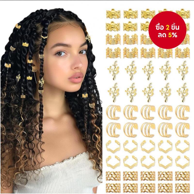 ชุดอุปกรณ์ผมปลอมข้ามพรมแดน 60 ชิ้น ประกอบด้วยเครื่องประดับผมเปีย สีทอง สีเงิน และห่วงต่อผมแบบดัด