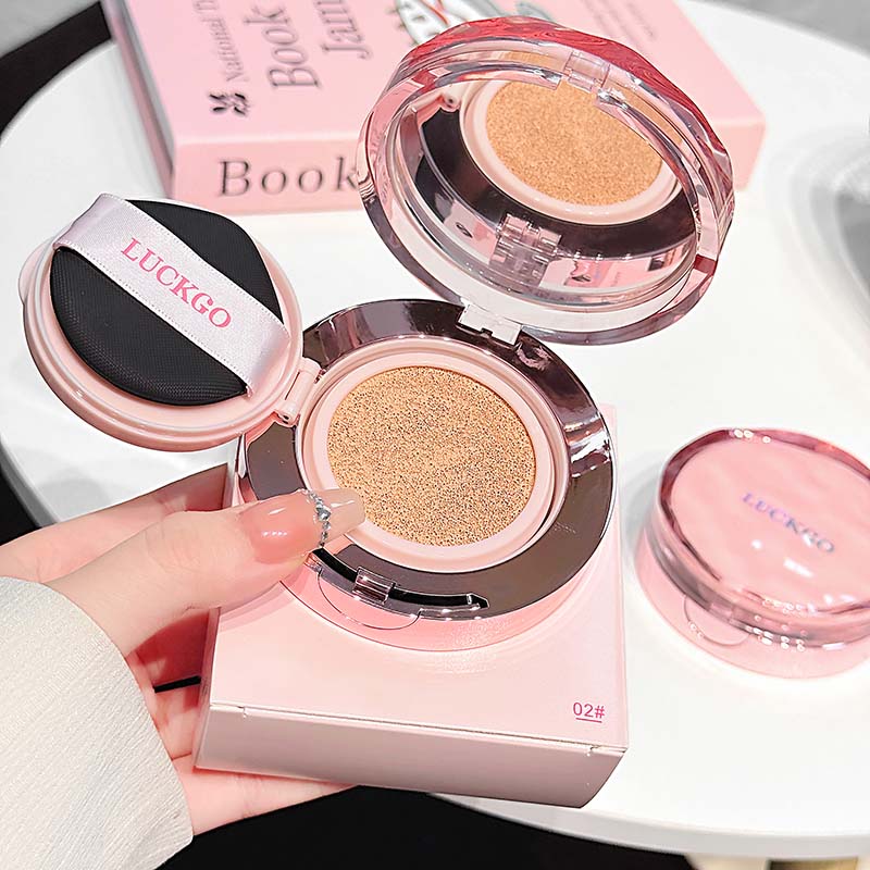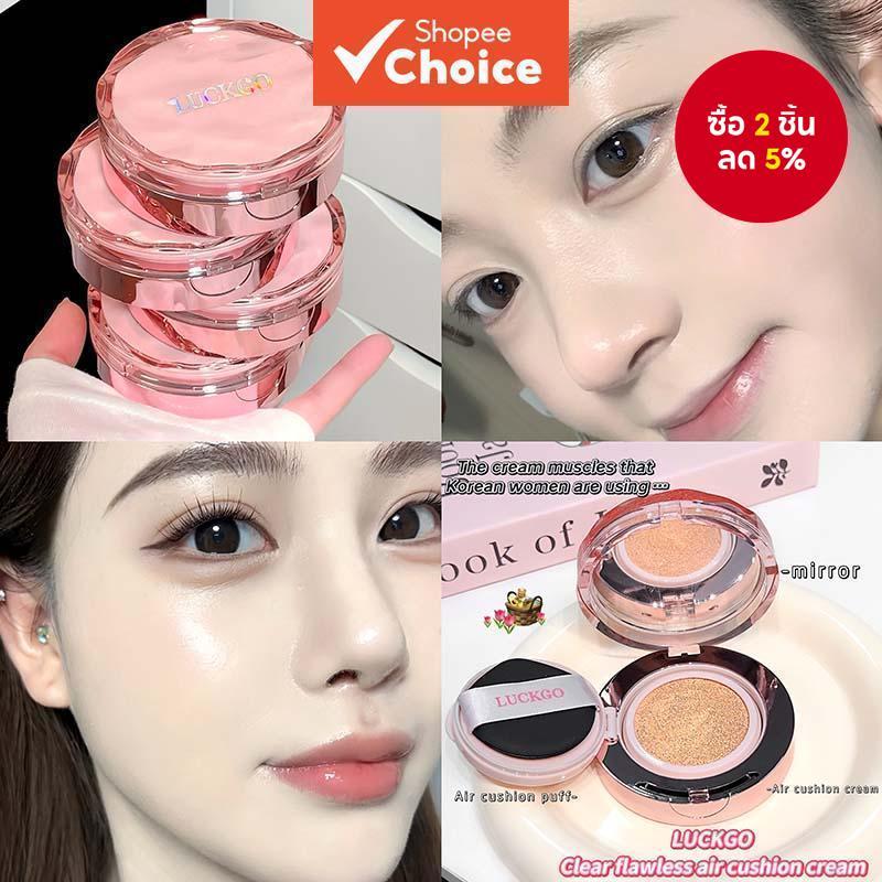 LUCKGO คุชชั่นรองพื้นโปร่งแสงติดทนนาน ปกปิดธรรมชาติ ชุ่มชื้น เรียบเนียน เบาสบาย
