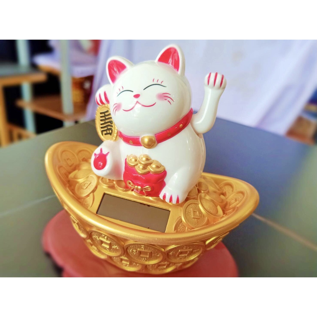DT59-267 แมวกวักนำโชคนั่งบนก้อนทอง [5] M9-3