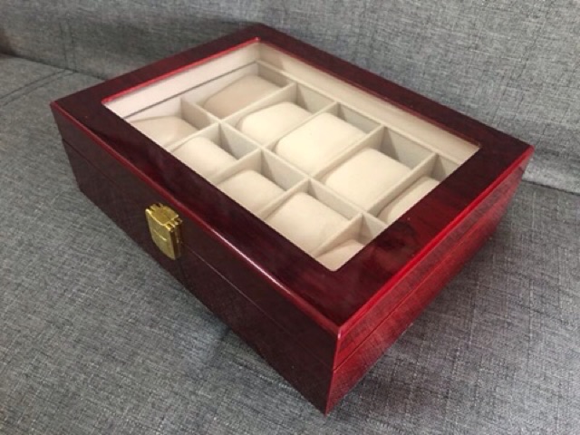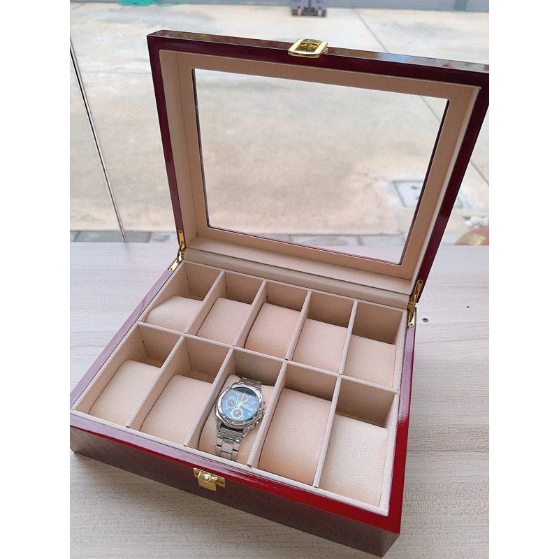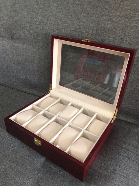 C02-2 กล่องใส่นาฬิกา 10ช่อง ไม้ฮอก กานี ข4-1