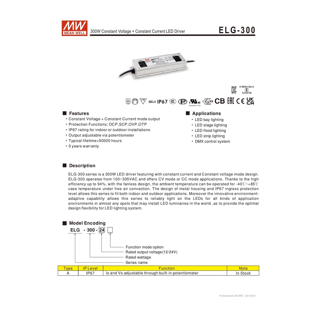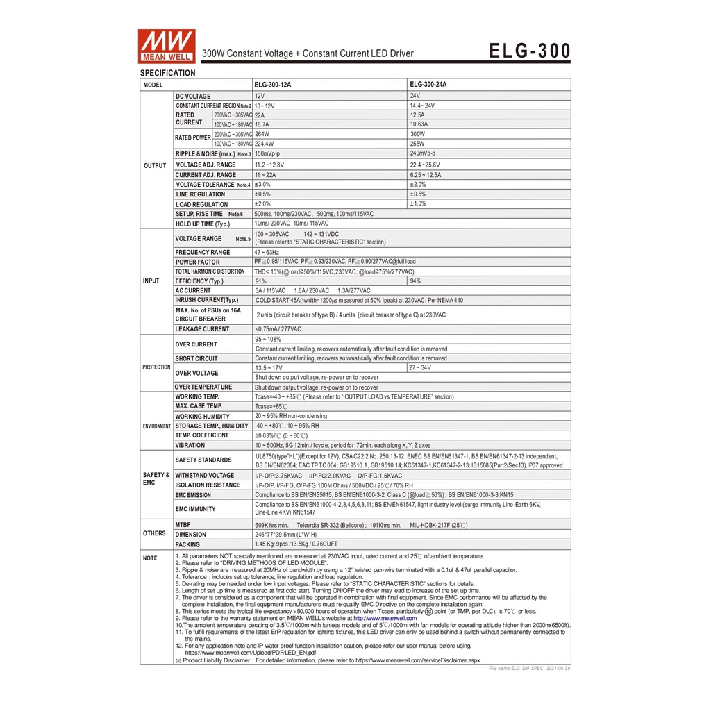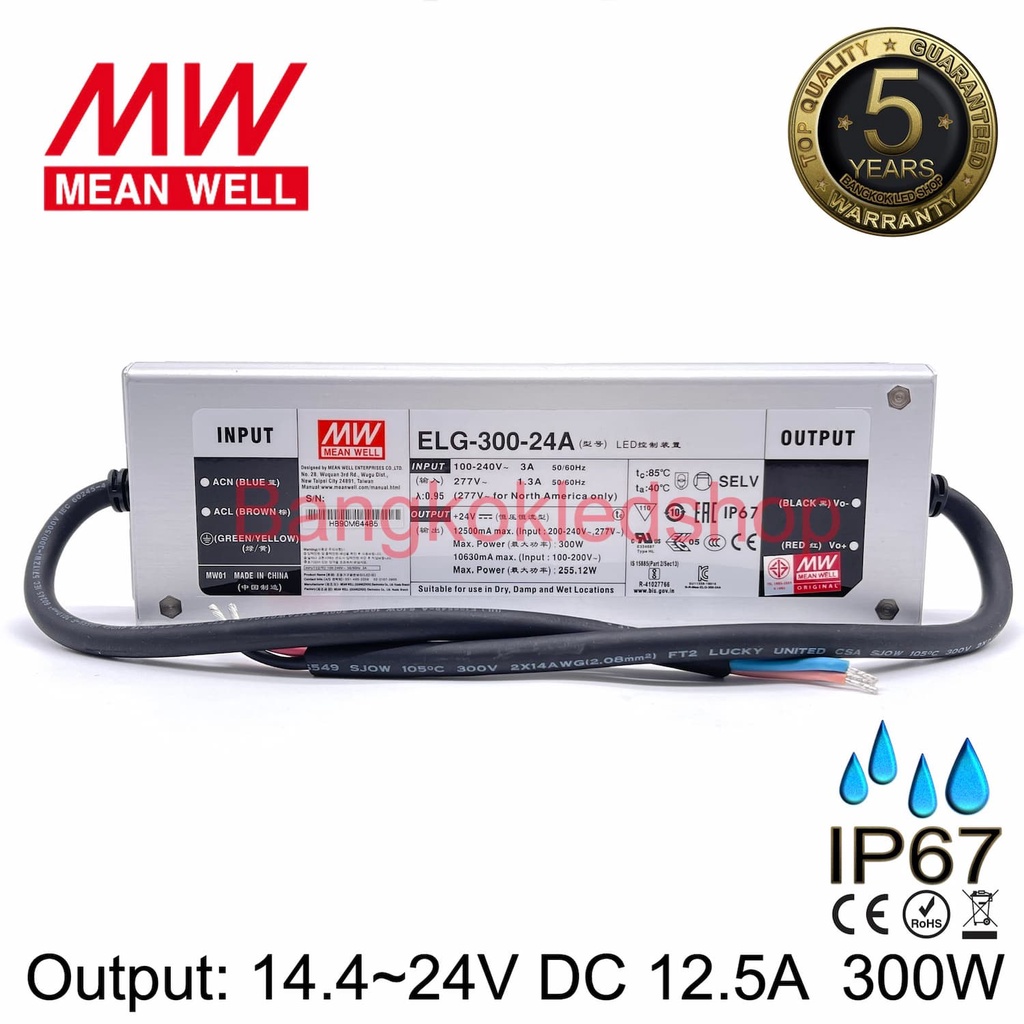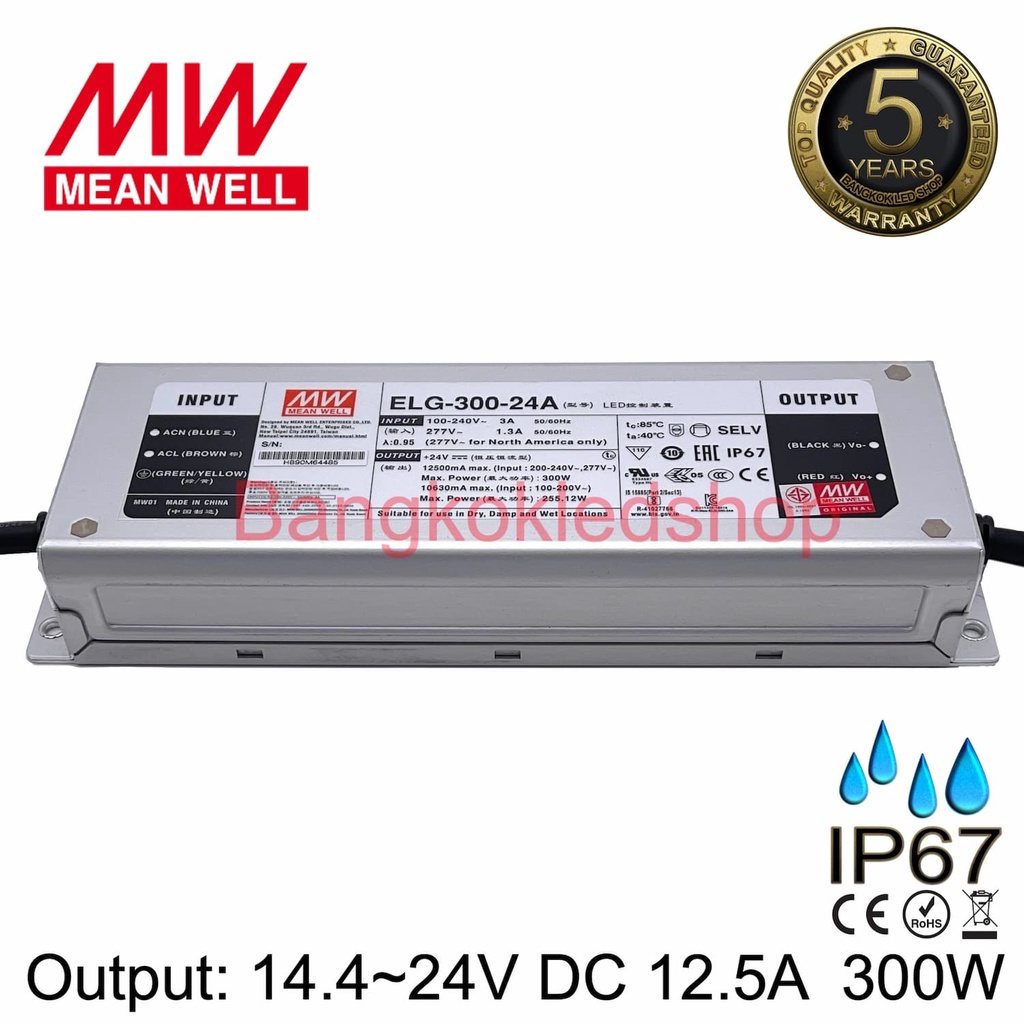 ELG-300-24A LED DRIVER 12.5AMP 24VDC 300W แอลอีดีไดรเวอร์ เพาเวอร์ซัพพลาย ยี่ห้อมินเวล IP67 กันน้ำ