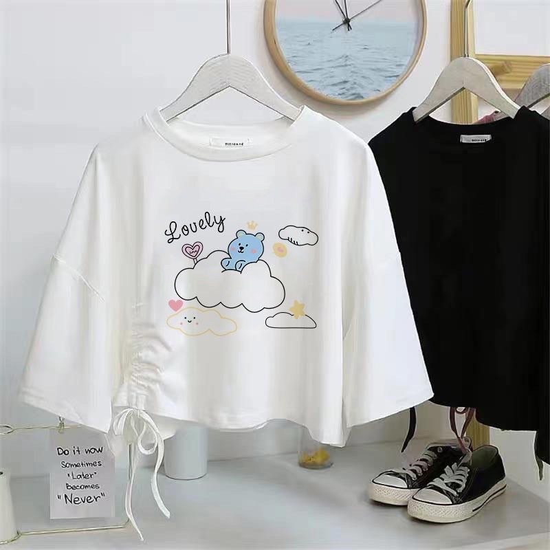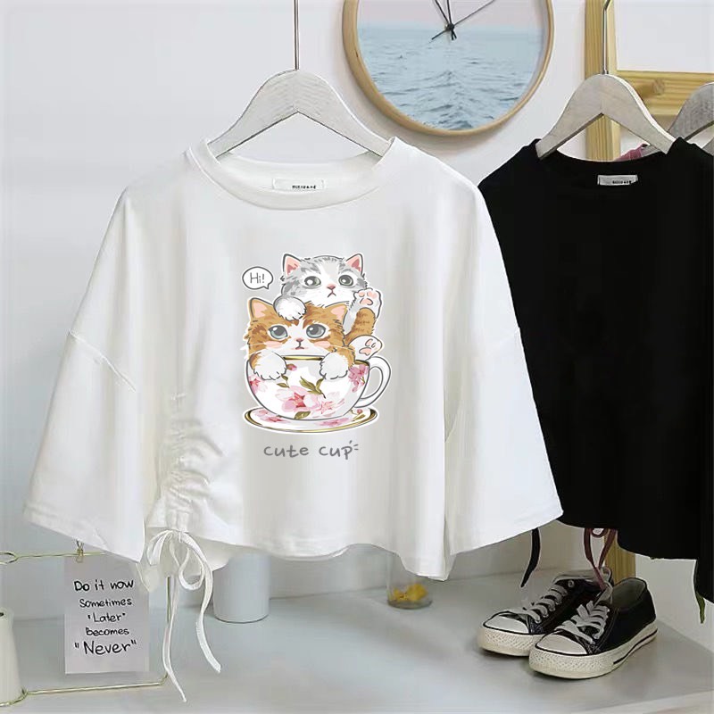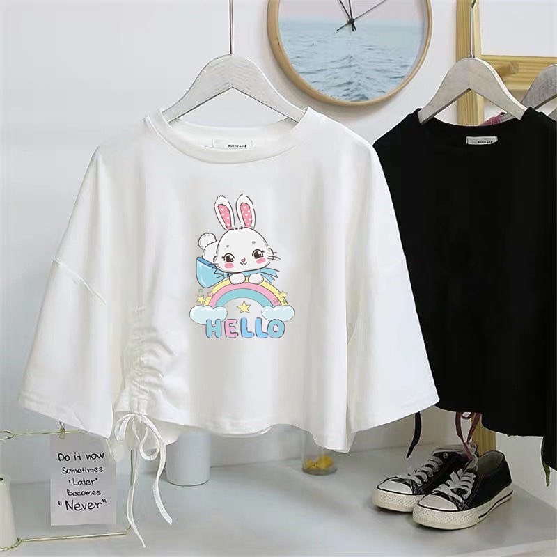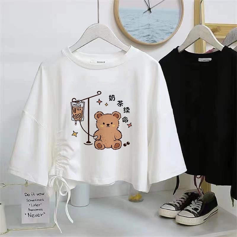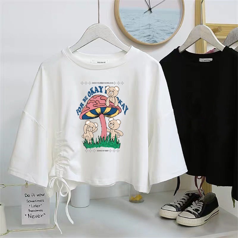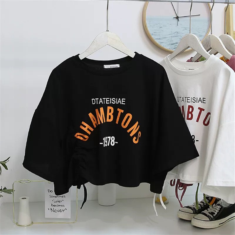 เสื้อยืดคอกลมแขนสั้น รูดข้างได้เก๋ๆ สกรีน DTATEISIAE OHAMBTONS -1978-