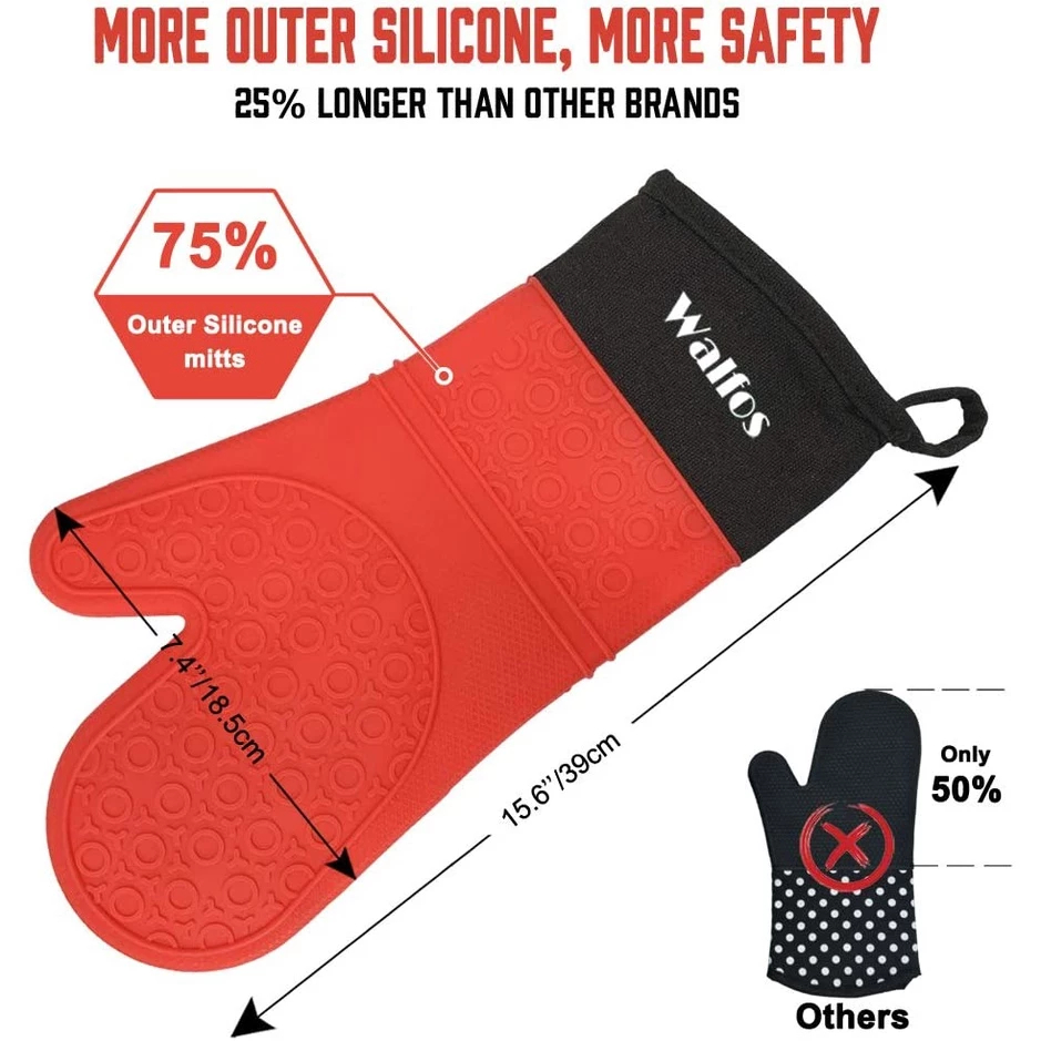 วอลฟอส ซิลิโคนทนความร้อนบาร์บีคิวถุงมือ1/2นิ้วครัว นวม ในครัวเรือนทําอาหารถุงมืออบ