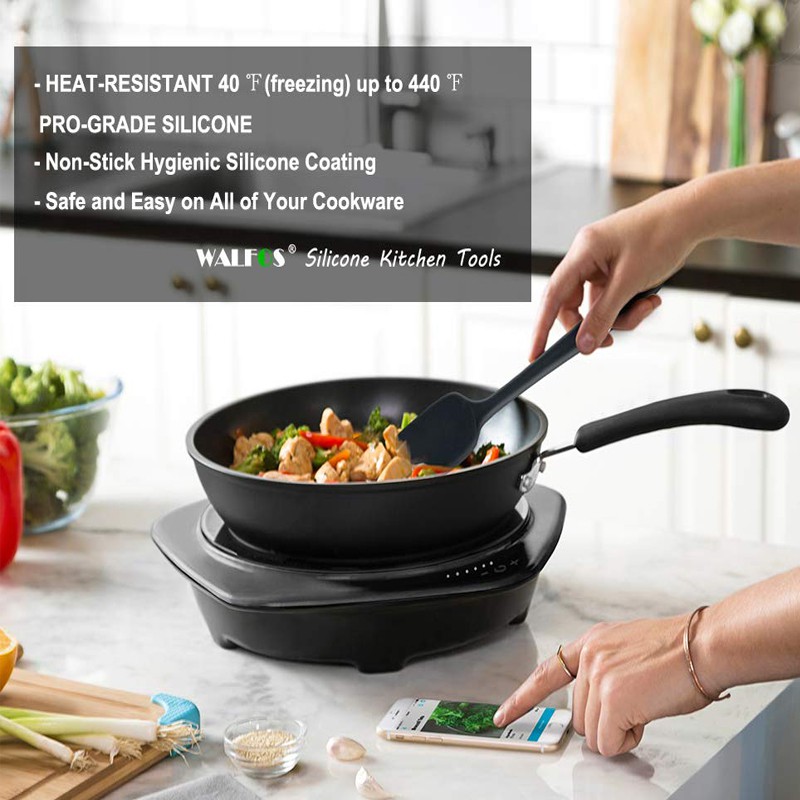 Walfos 3ชิ้น มืออาชีพอาหารเกรดซิลิโคนไม้พายชุดทนความร้อนไม่มีรอยต่อยางspatulas