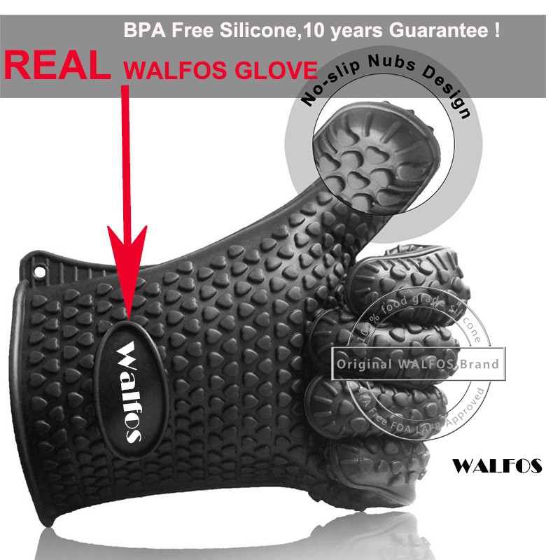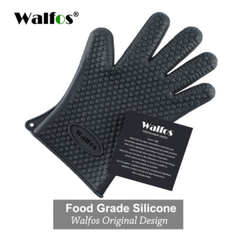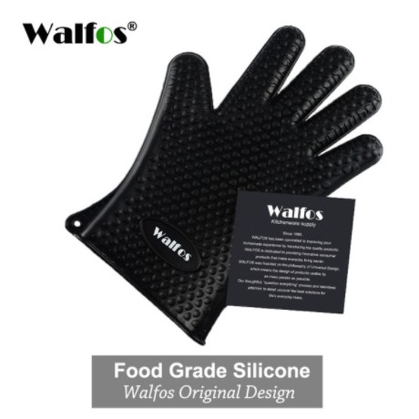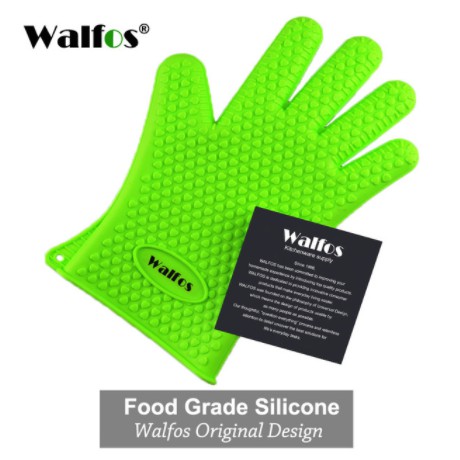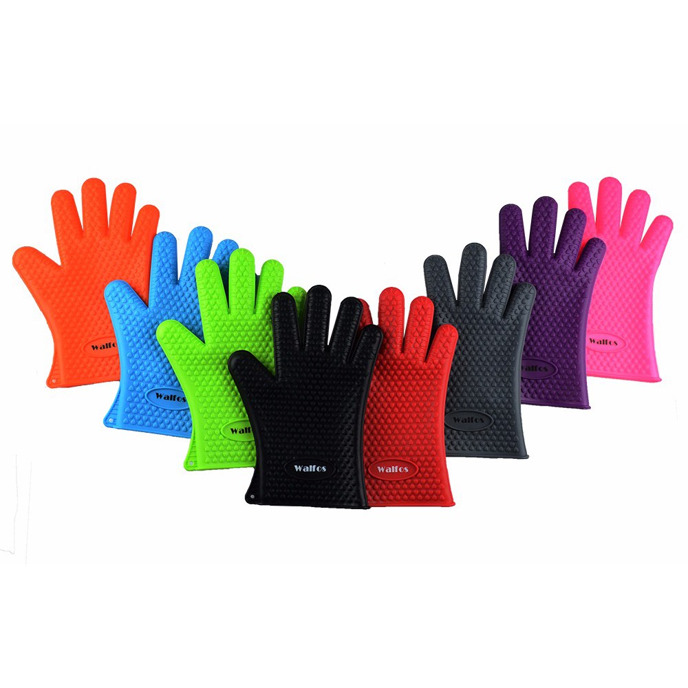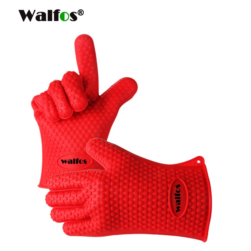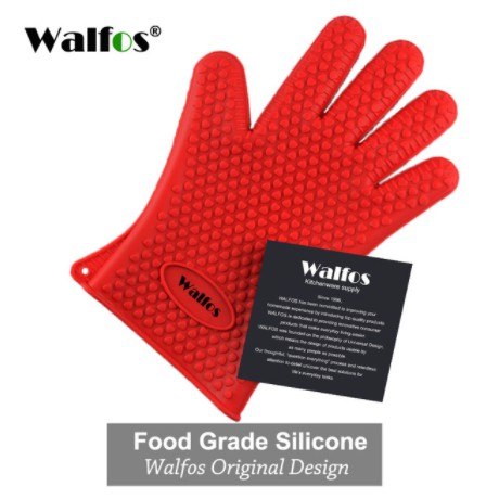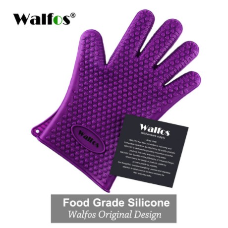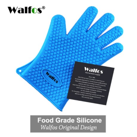 WALFOS 1PC ฉนวนกันความร้อนซิลิโคนห้องครัวปลอกซิลิโคนหนากันน้ำร้อนลวกและซิลิโคนทนความร้อนสูงถุงมืออบพิเศษ