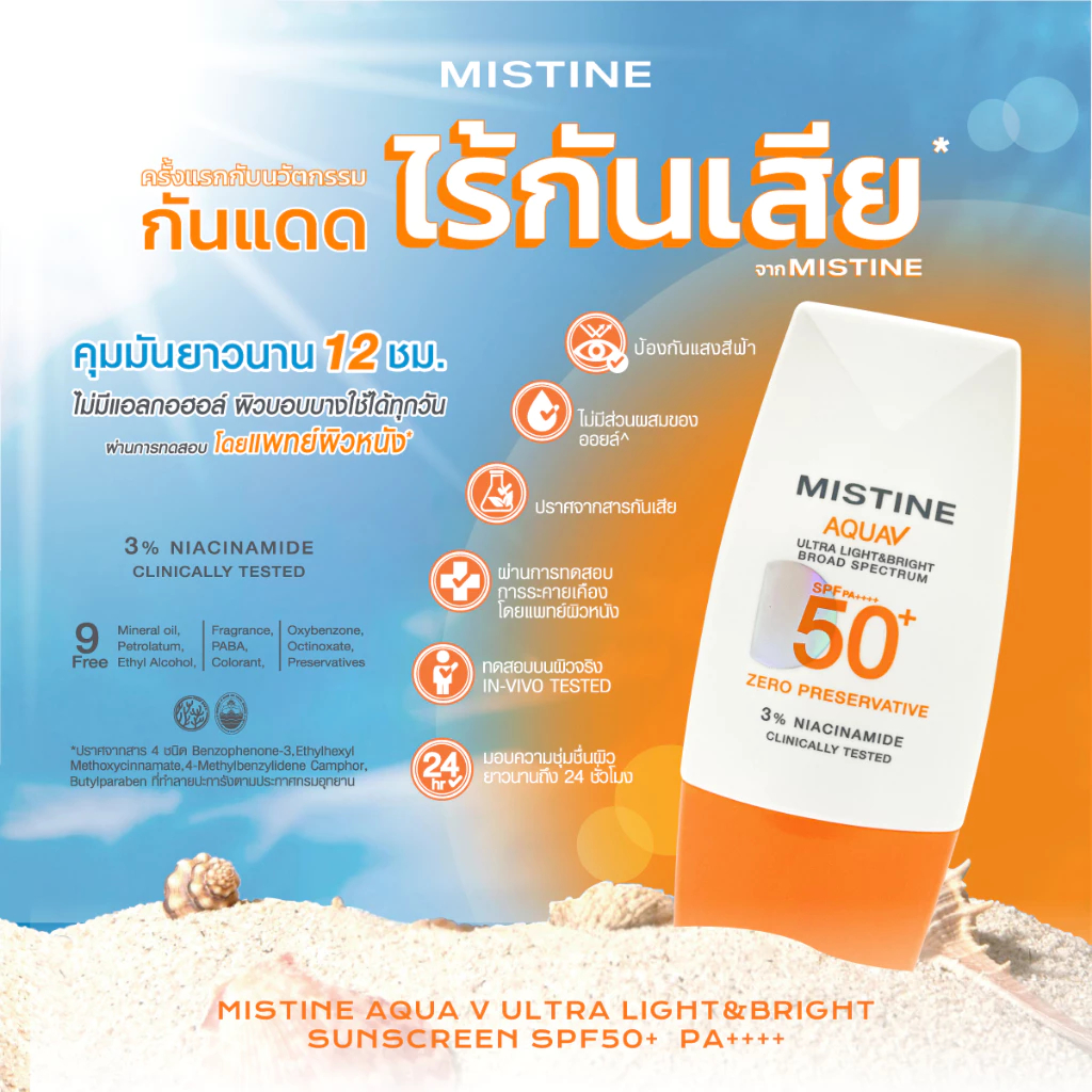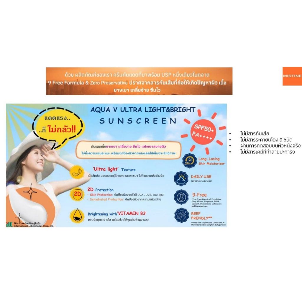 MISTINE AQUA V ULTRA LIGHT&BRIGHT SUNSCREEN SPF50+ PA++++ ( 1 หลอด 15 ml. )