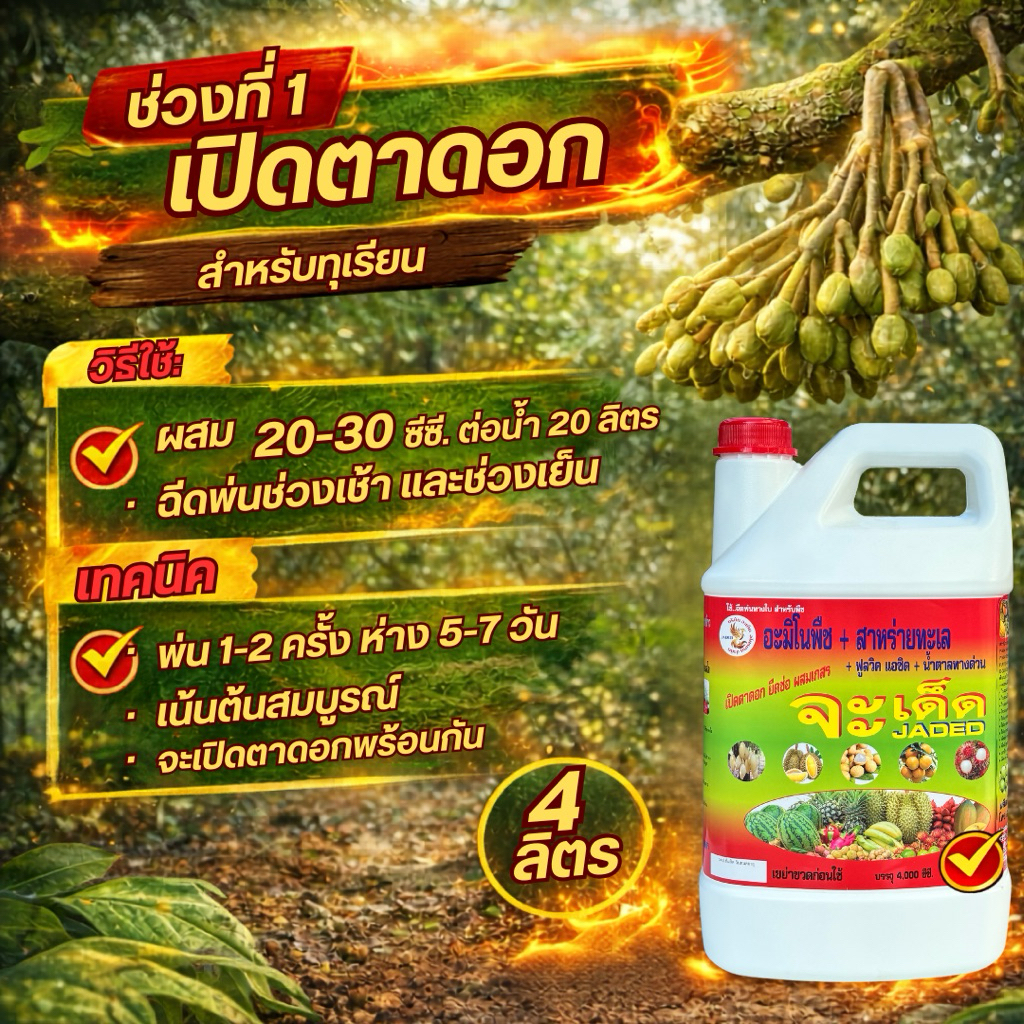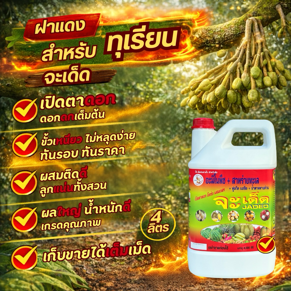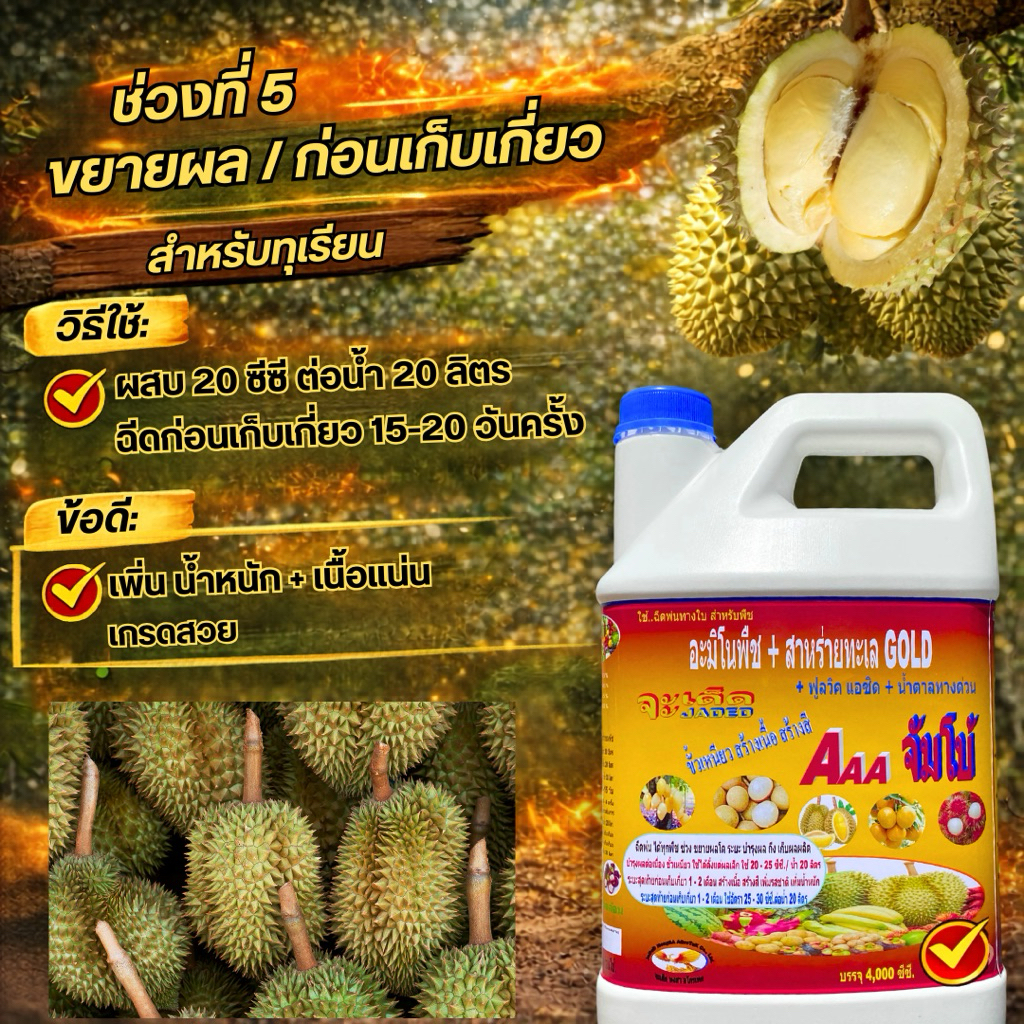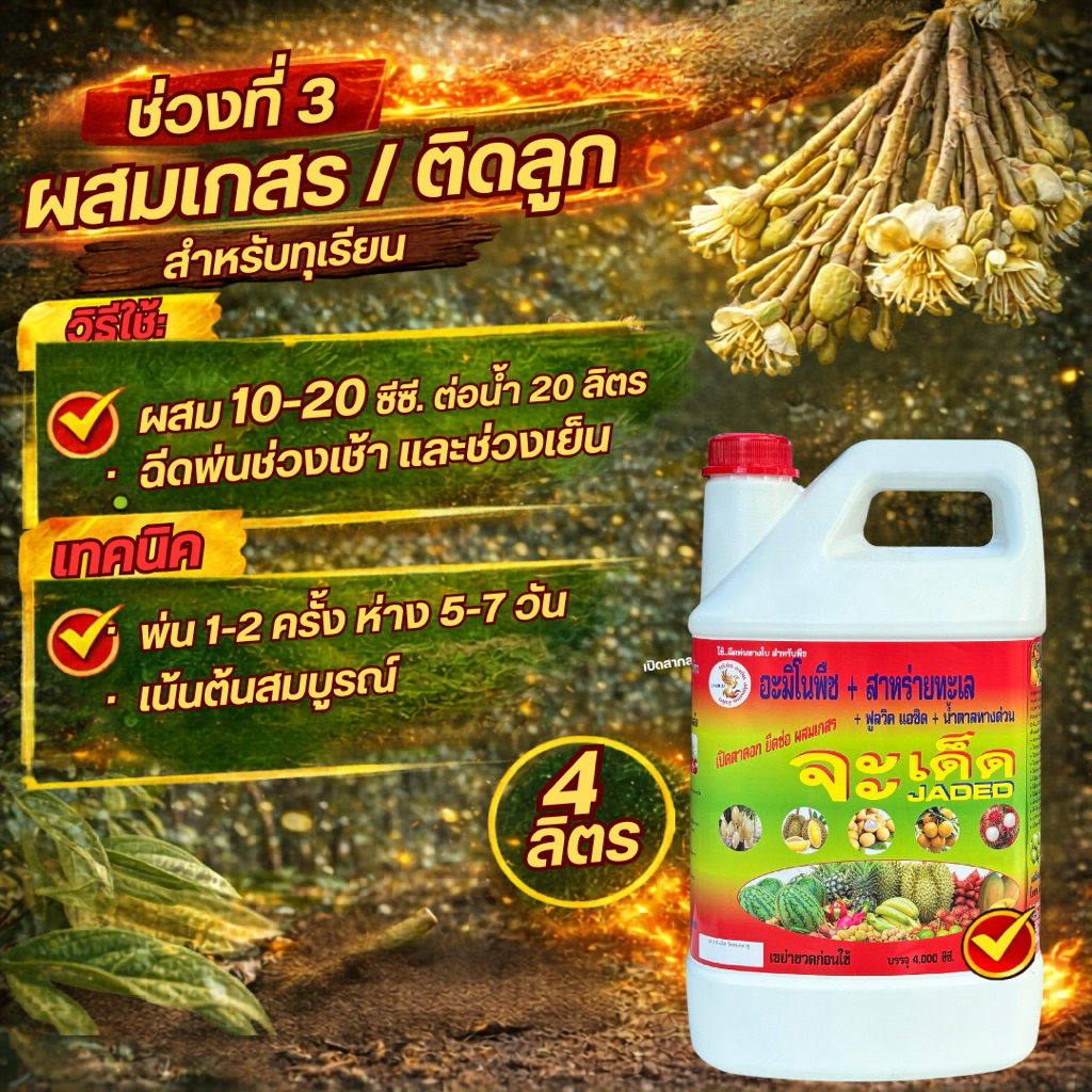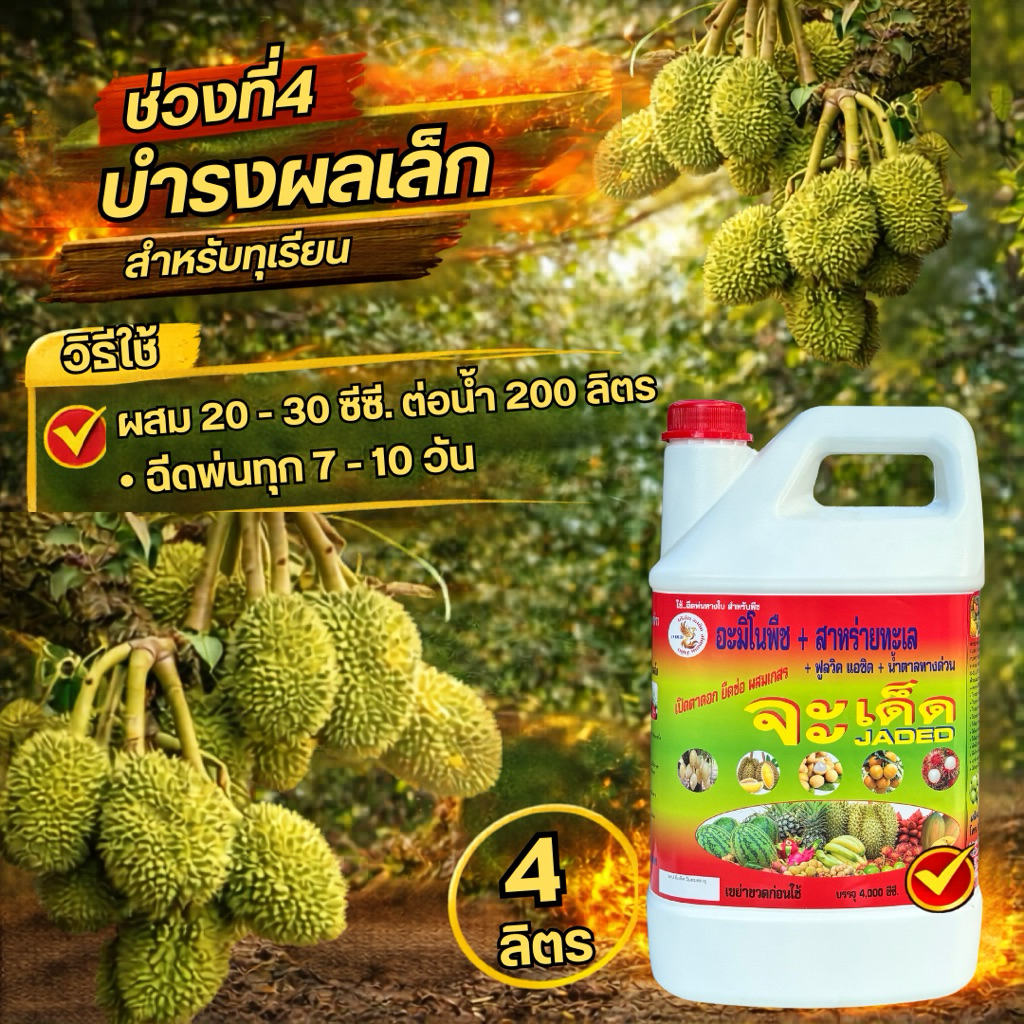 จะเด็ด สูตรทุเรียน 4 ลิตร ไคโตซาน อะมิโน นํ้าตาลทางด่วน สาหร่ายทะเล อาหารพืช ปุ๋ย ฮอร์โมนพืช ฉีดพ่นทางใบ ฮิลมิค