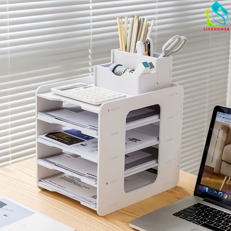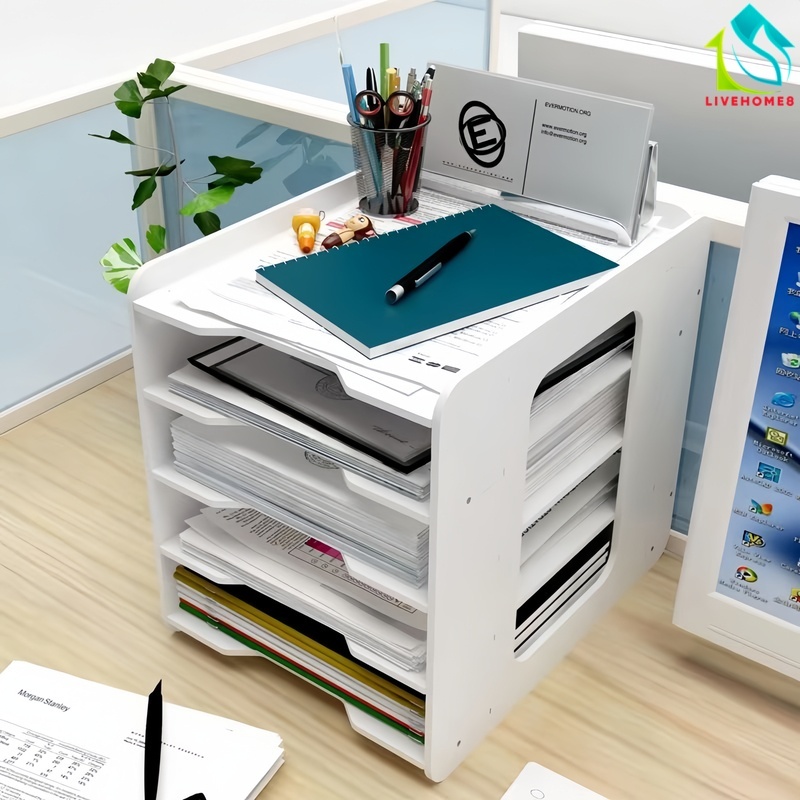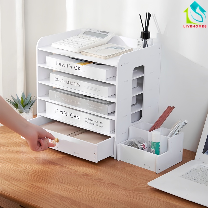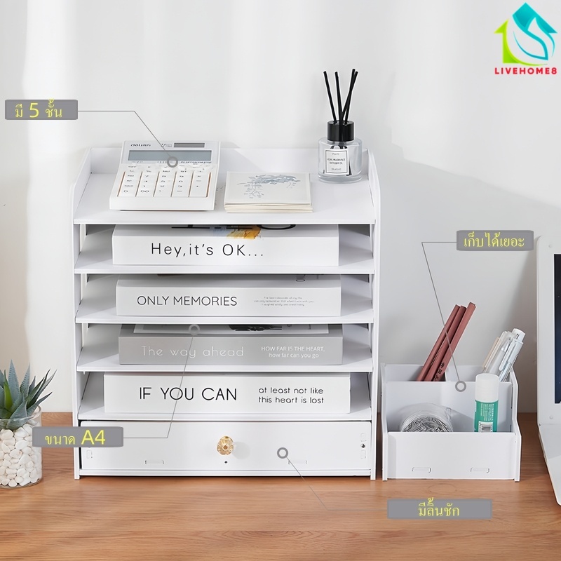 ชั้นวางเอกสาร A4 สีขาว มี 2 แบบ มีหรือไม่มีลิ้นชัก อเนกประสงค์