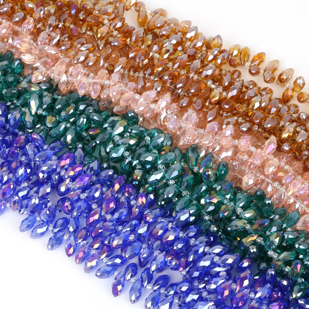 [6X12 มม.] 50 ชิ้นลูกปัดแกนผลไม้เหลี่ยมเพชรพลอยแก้วคริสตัลลูกปัด DIY Handmade จี้อุปกรณ์เสริม
