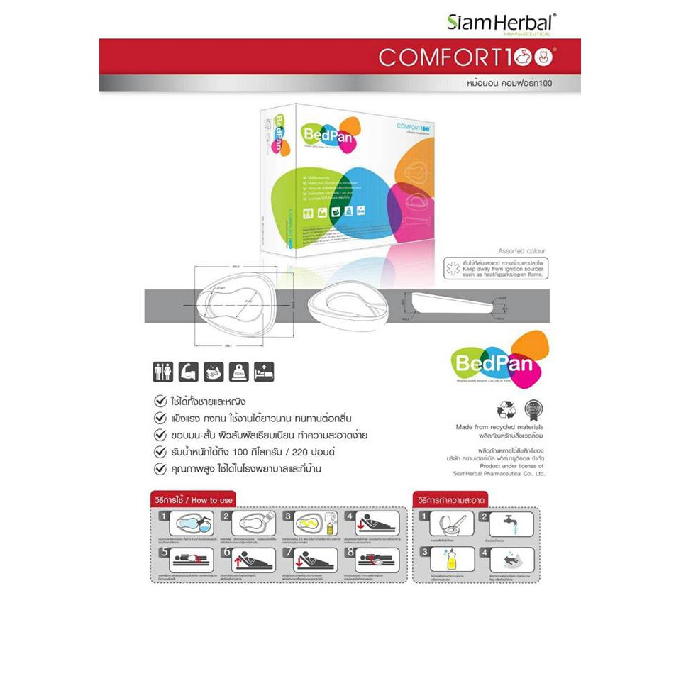 BEDPAN COMFORT100 หม้อนอนเตี้ย คอมฟอร์ท100 พลาสติก คละสี (1 ชิ้น)