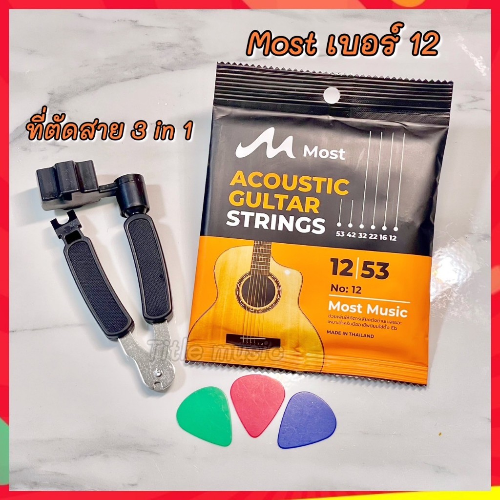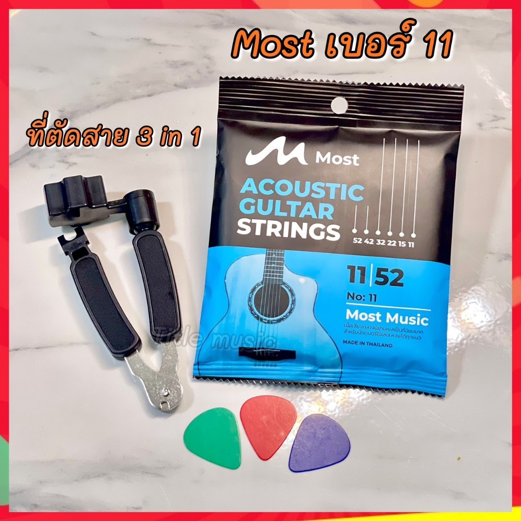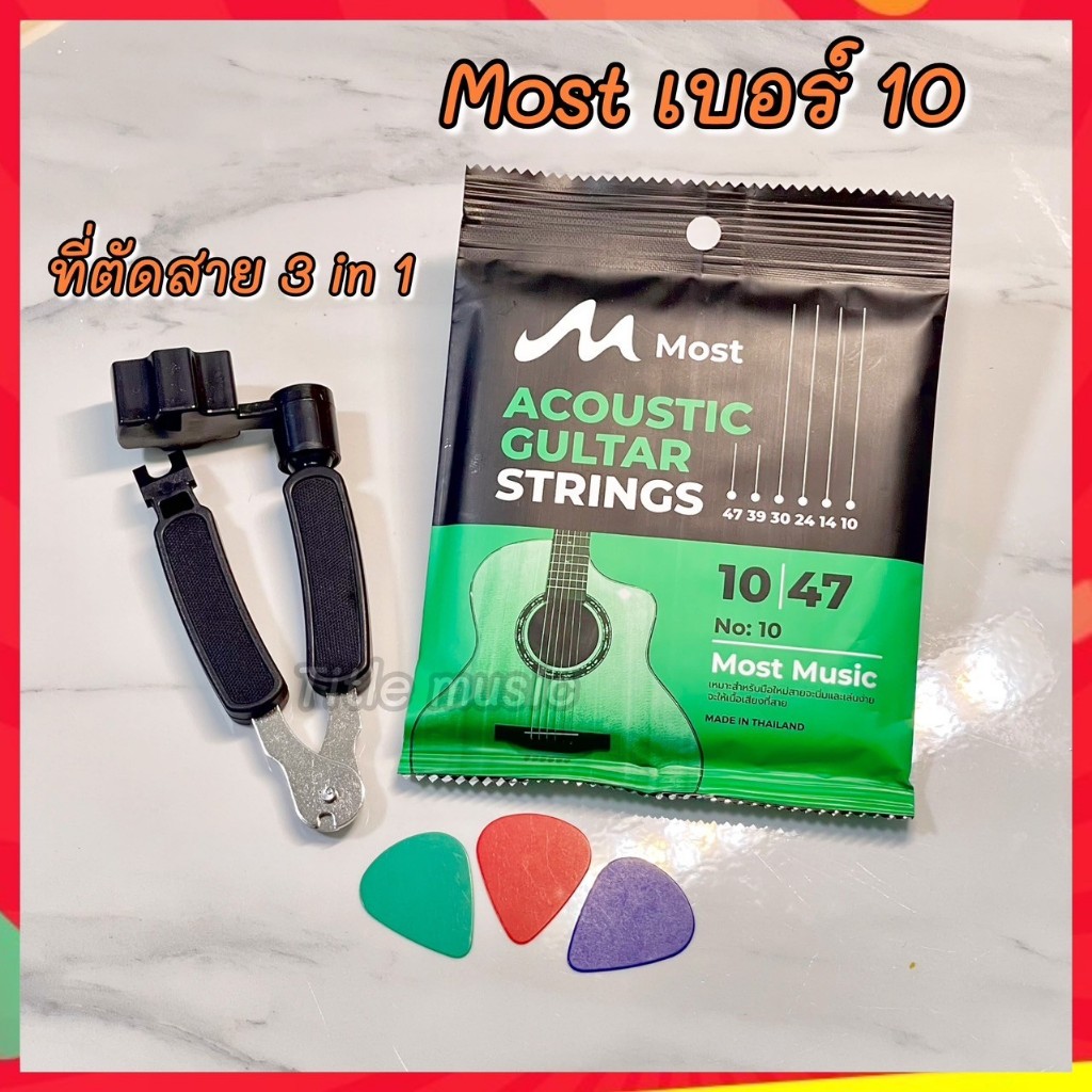 (พร้อมส่ง) เซ็ตสายกีต้าร์โปร่ง most+ที่ตัดสาย 3 in 1 แถมฟรี ปิ๊กกีต้าร์ 3 ชิ้น สายกีต้าร์โปร่งคุณภาพ สายนิ่มเล่นง่าย