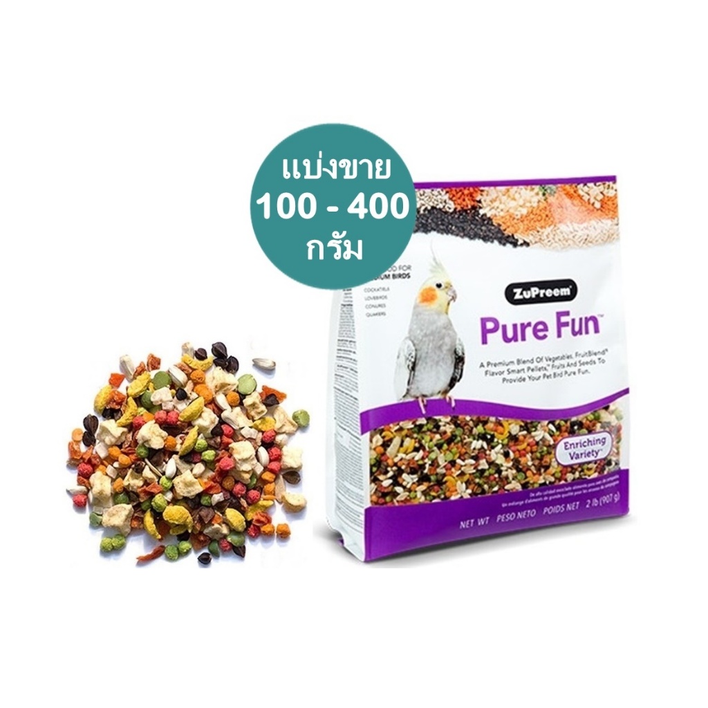 Pure Fun อาหารนก นวัตรกรรมใหม่ ผสมพืชผัก ผลไม้ แบ่งขาย 100 - 400 กรัม