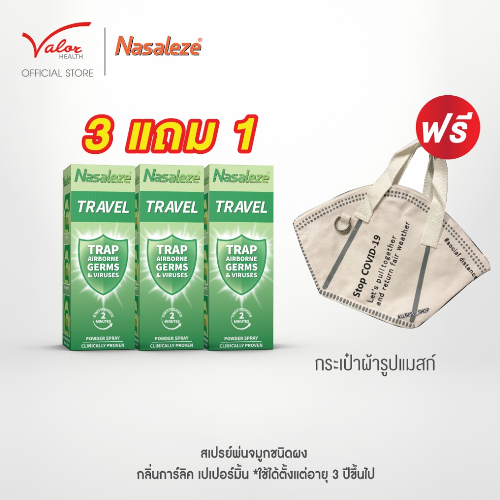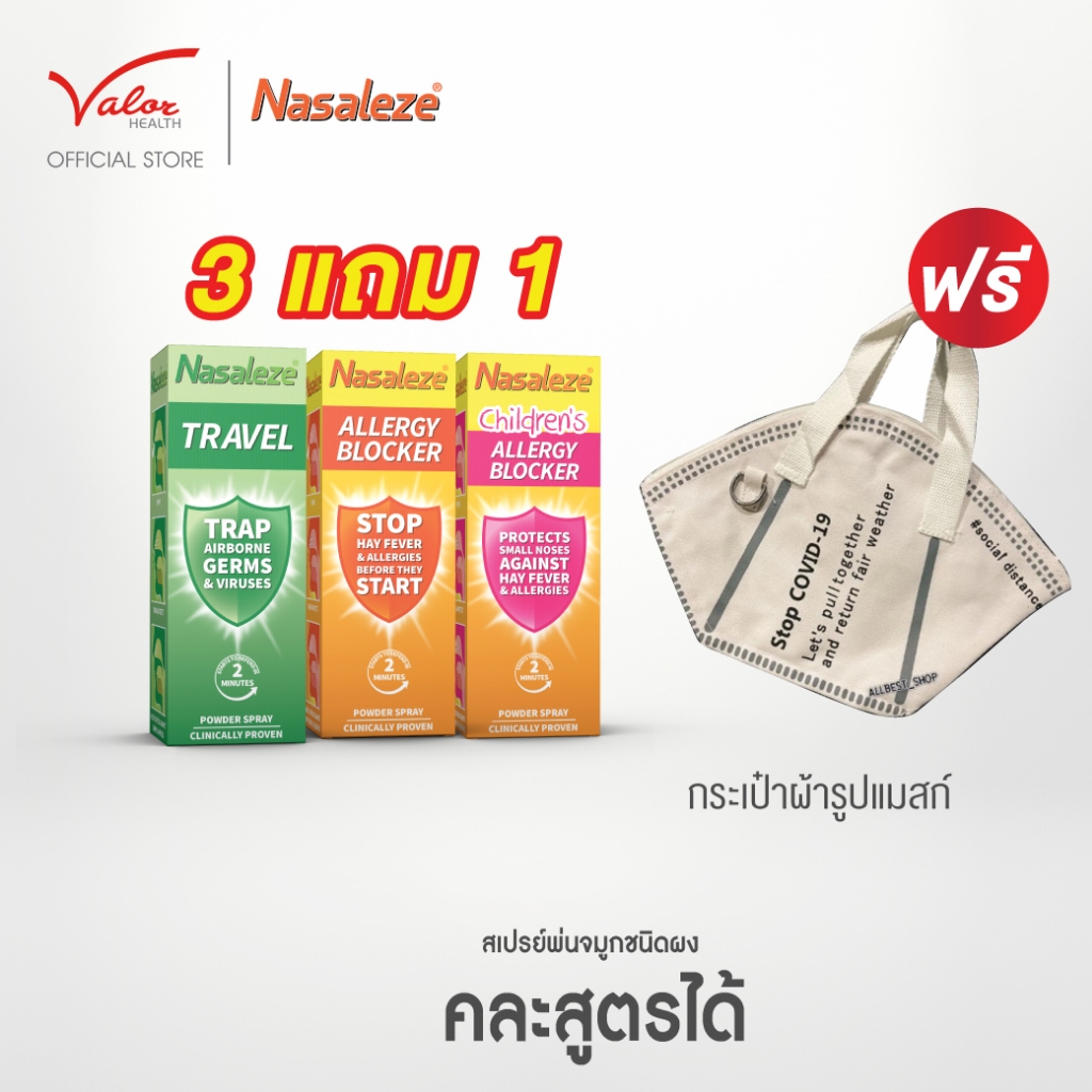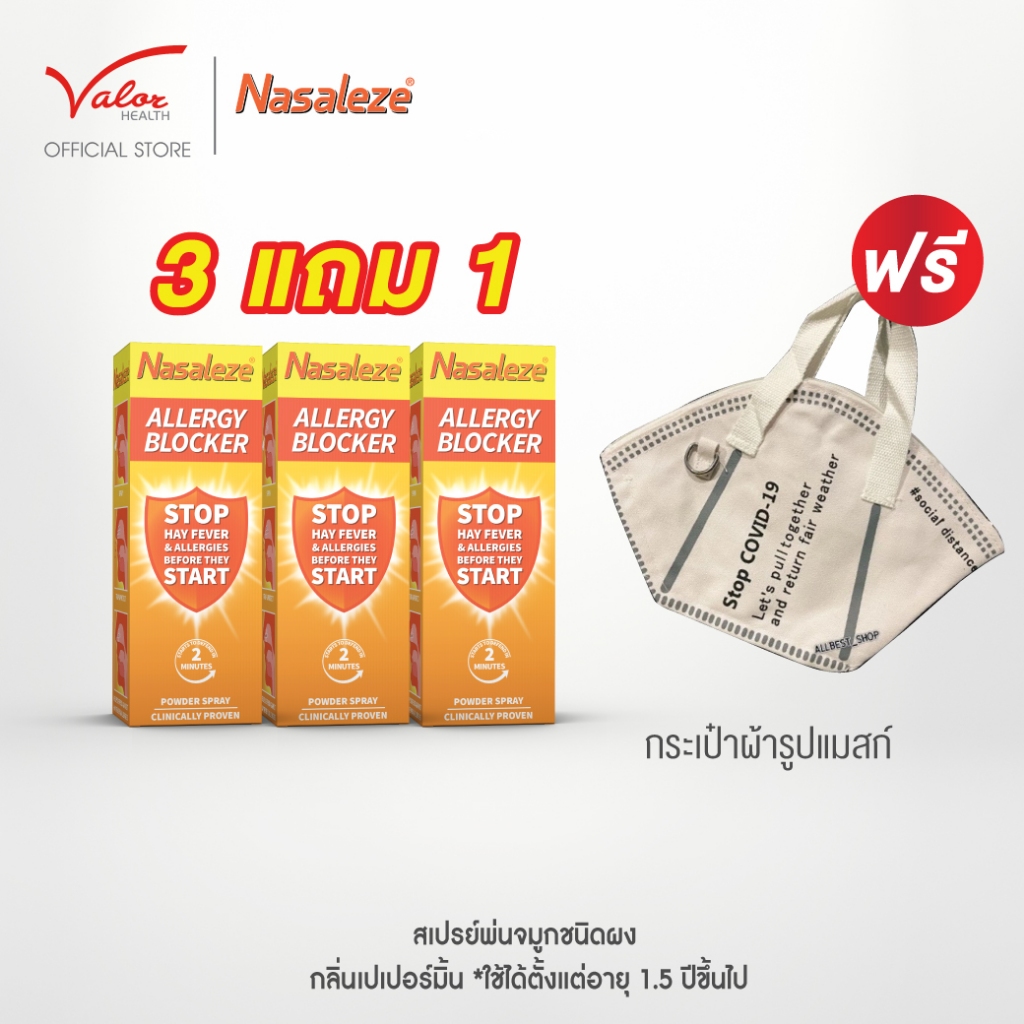 โปรร้อน!!! ซื้อนาซัลลีซ 3 กล่อง แถมกระเป๋ารูปแมสก์ นาซัลลีซ Nasaleze สเปรย์พ่นจมูกแบบผง