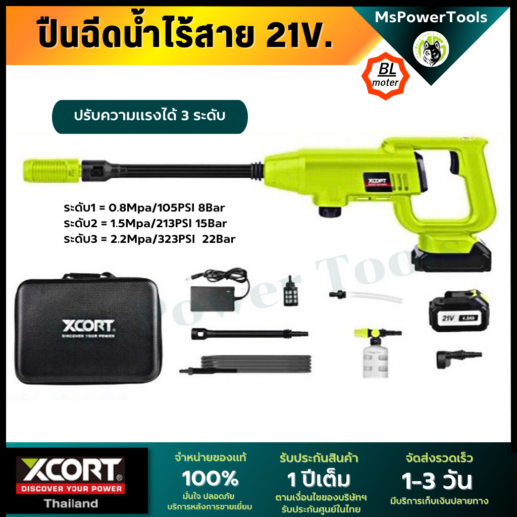 เครื่องฉีดน้ำแรงดันสูง ไร้สาย ปืนฉีดน้ำแรงดันสูง Xcort 22 Bar แถมกระบอกฉีดโฟม ล้างรถสะอาด