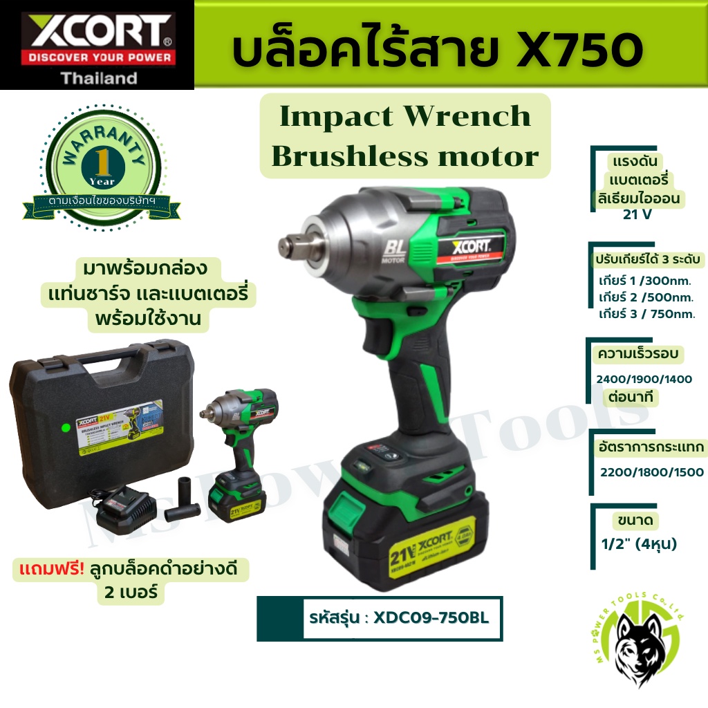 บล็อกไฟฟ้าไร้สาย Xcort รุ่น X750 แรง บิดสูง 750 Nm ประแจไฟฟ้าไร้สาย แท้ประกันศูนย์ไทย 1ปี บล็อกไร้สาย