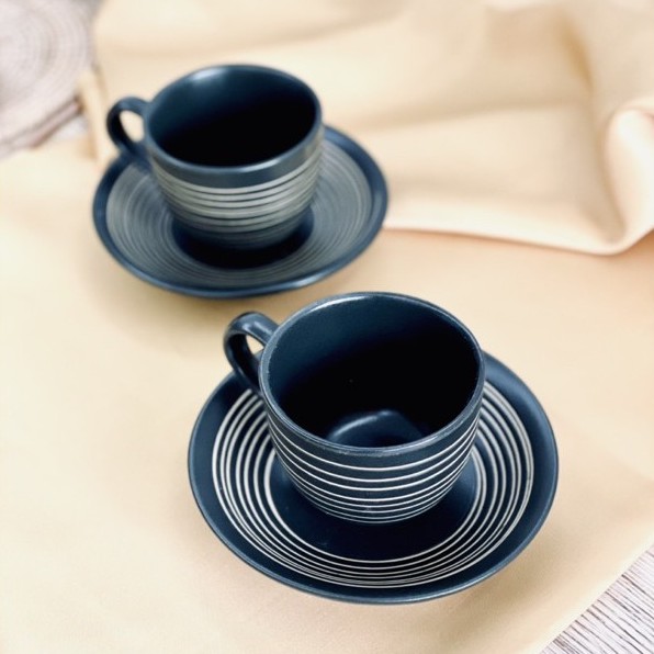 ชุดกาแฟเซรามิคพร้อมจานรอง ลายวนเส้น/ขูดลายรอบแก้ว เพิ่มความเก๋ให้เมนูร้อนได้ดี ความจุ 200 ml.