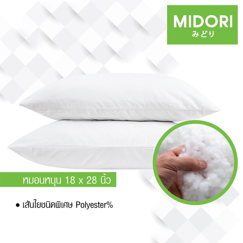 MIDORI Home หมอนหนุนขาว ใยแน่น 1000 กรัม สัมผัสนุ่มสบาย ไม่ระคายเคืองผิว