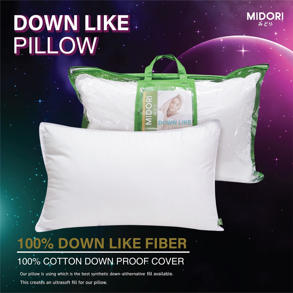 MIDORI หมอนโรงแรม 6 ดาว⭐ หมอนหนุนขนห่านเทียม 1,500 กรัม Down like PILLOW ผ้าคอตตอล Cotton 100%