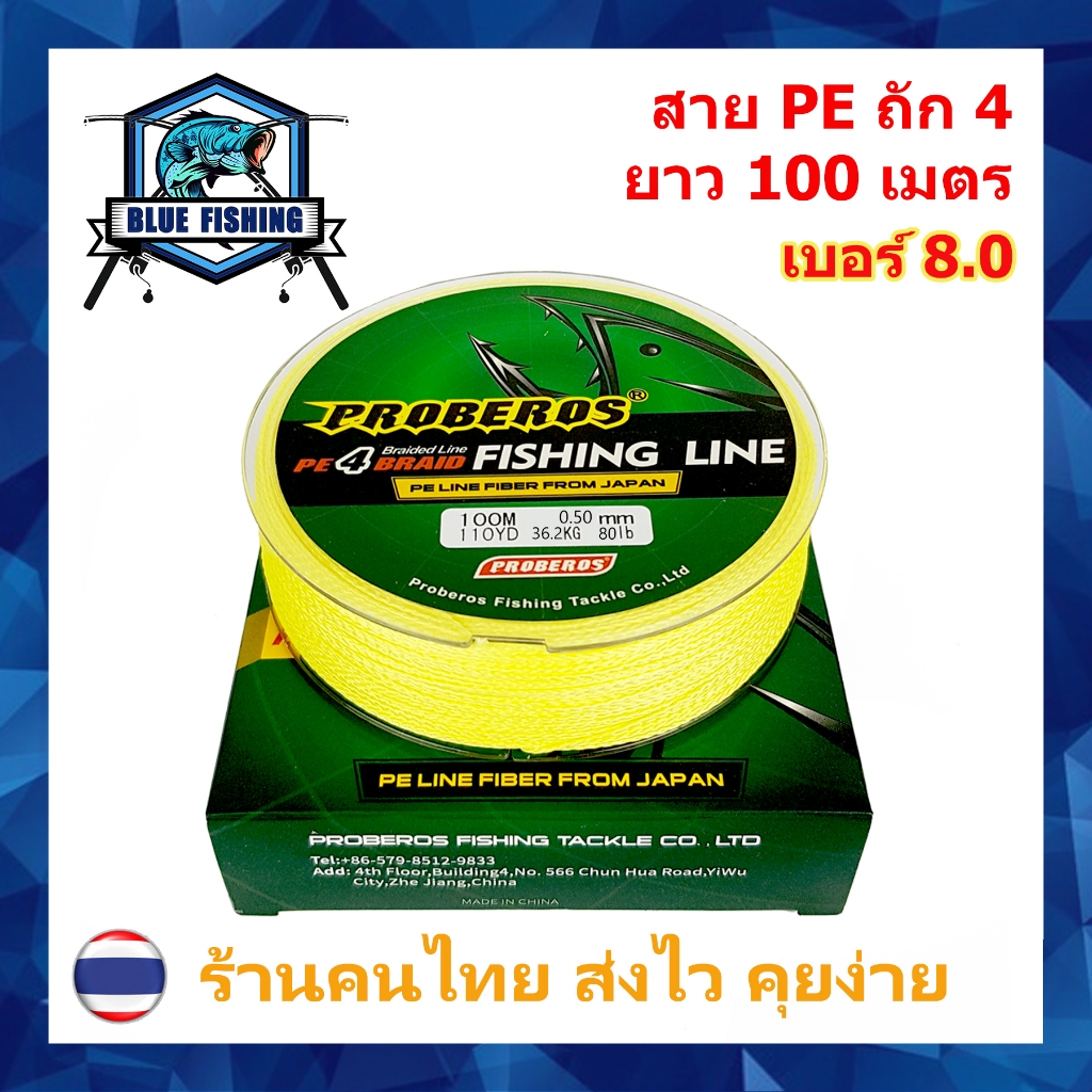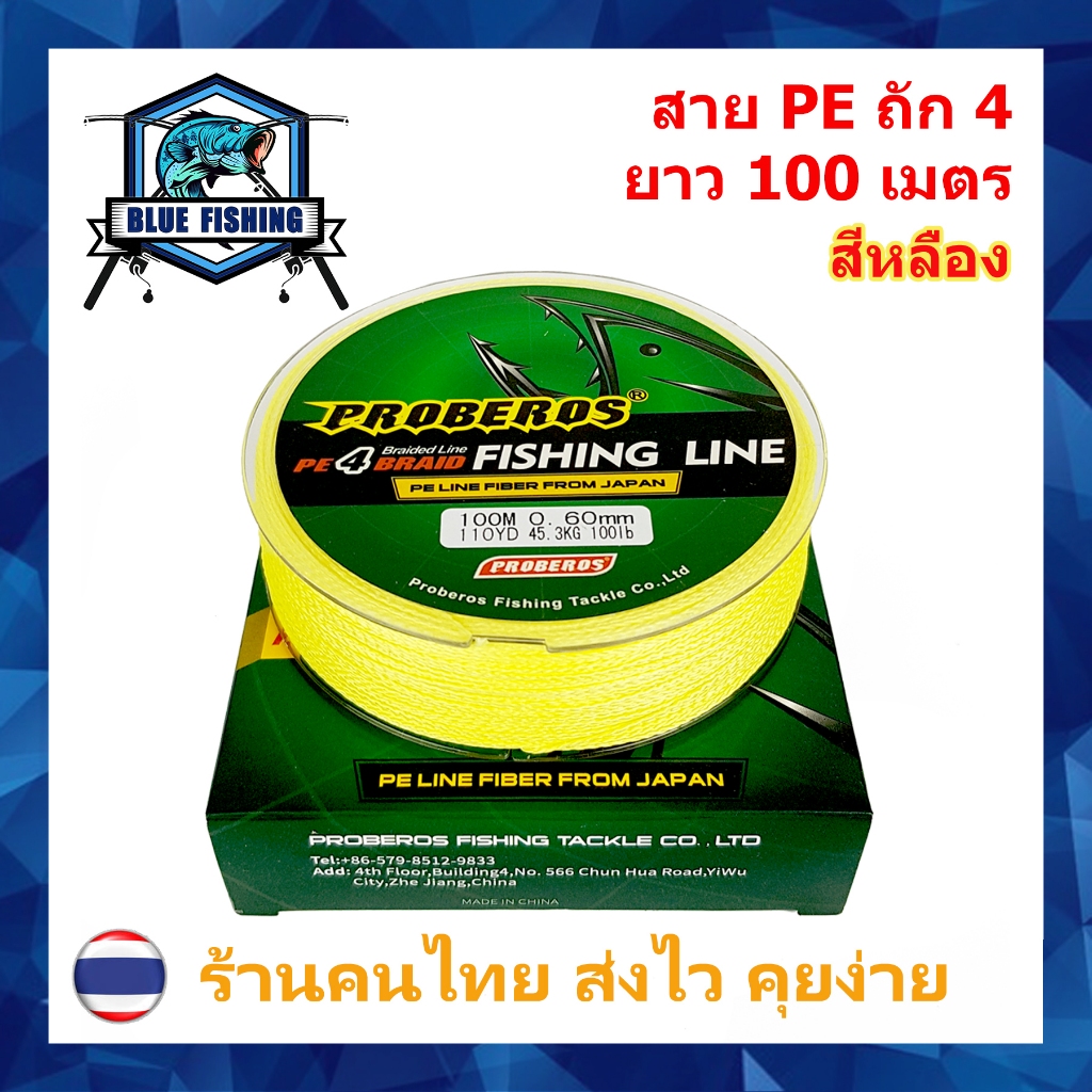 สาย PE ถัก 4 สีเหลือง เหนียว ทน สายพีอี ยาว 100 เมตร (ร้านคนไทย ส่งไว ราคาส่ง)