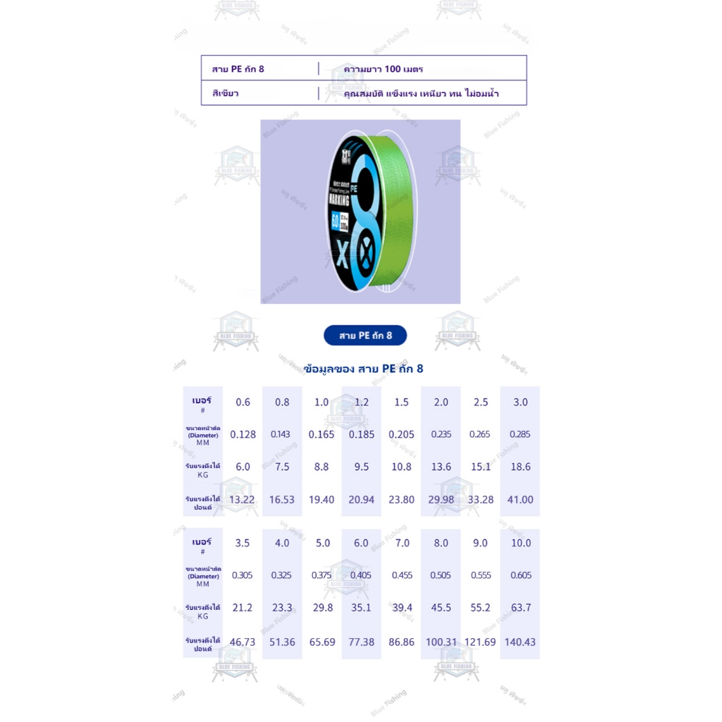 สาย PE ถัก 8 ยาว 100 เมตร สีเขียว สายพีอี เหนียว ทน ไม่อมน้ำ (ส่งไว ร้านคนไทย)