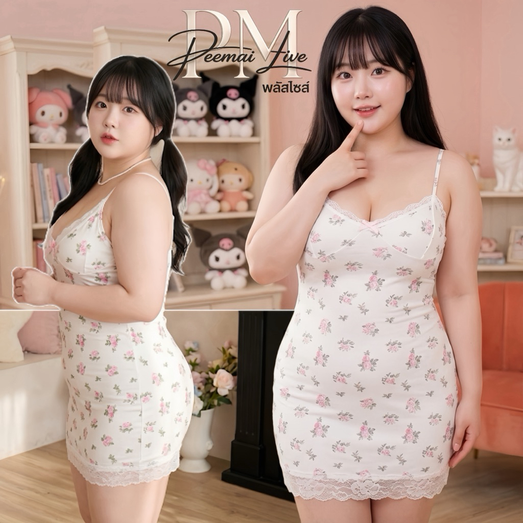 PEEMAI LIVE ชุดนอนสาวอวบผ้าฝ้าย(XL-5XL นน.40-100 kg) 👑เกรดพรีเมี่ยมพร้อมส่ง P-925