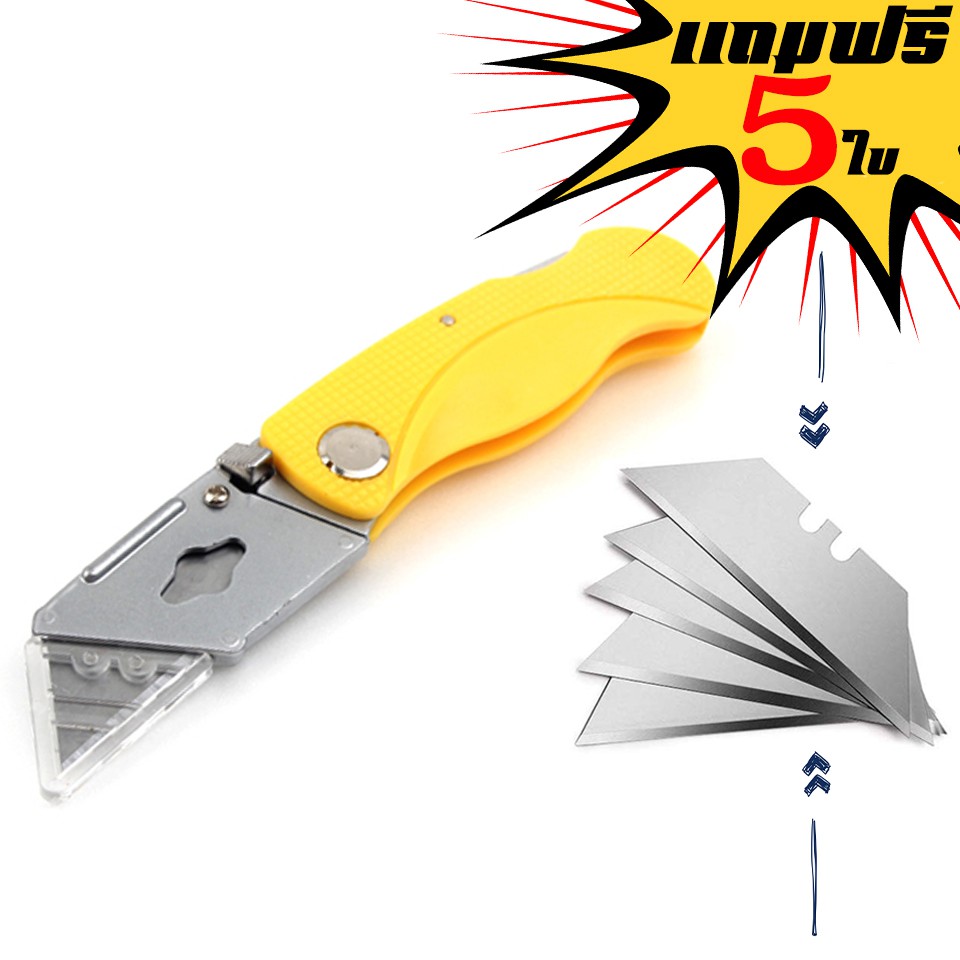 มีดคัทเตอร์ มีดพับ คัตเตอร์นิรภัย อเนกประสงค์ แถมฟรีใบมีดสำรอง 5 ใบ