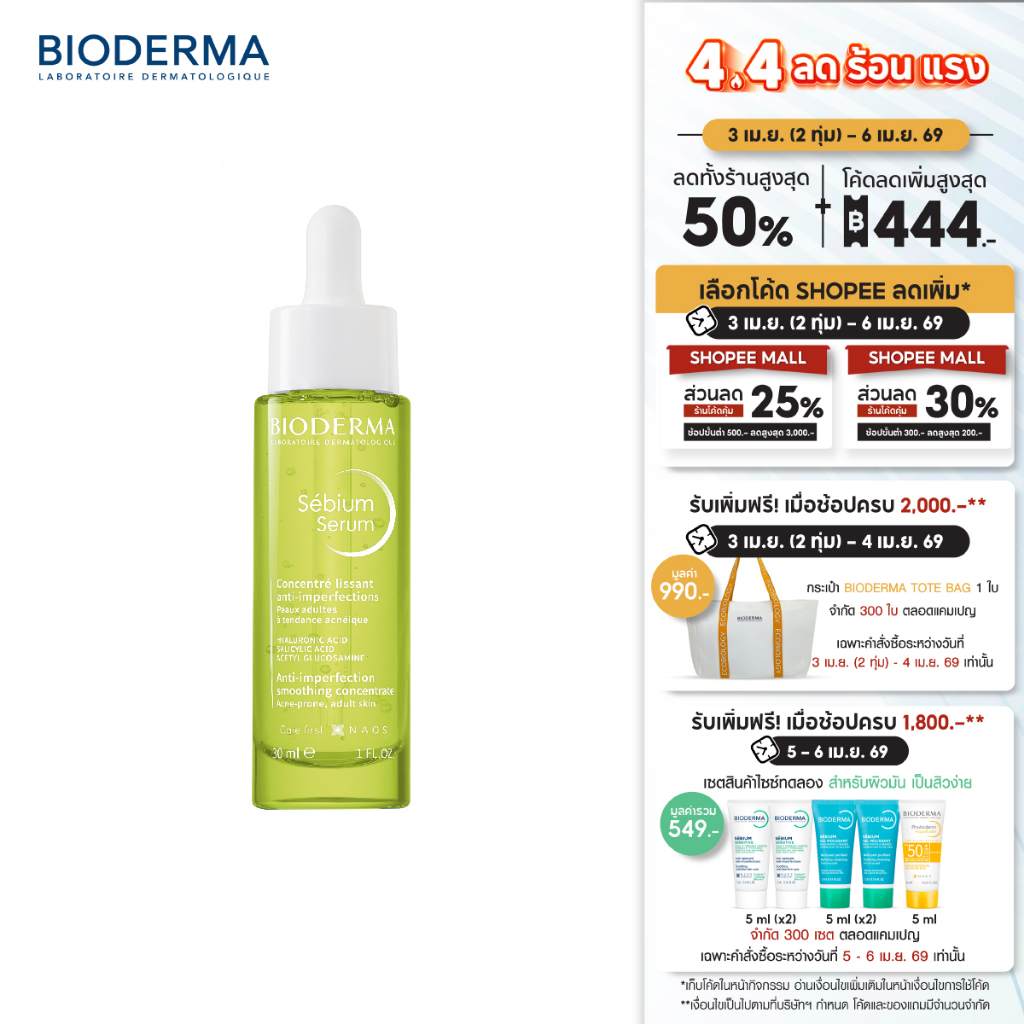 [EXP 31/03/2027] Bioderma Sebium Serum 30 ml เซรั่มสำหรับผิวมีปัญหาสิว มีริ้วรอย และรูขุมขนกว้าง