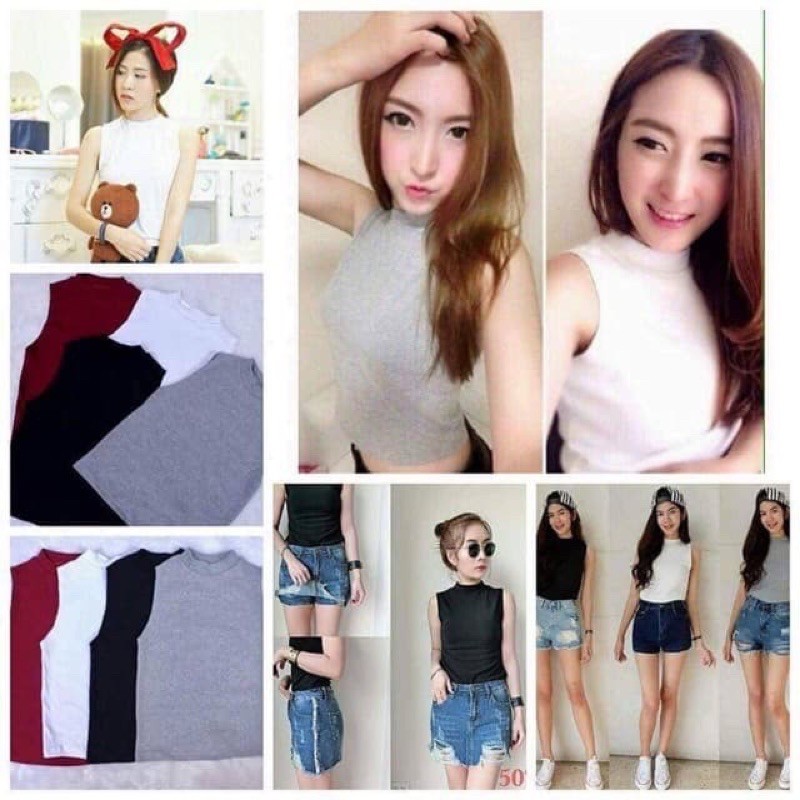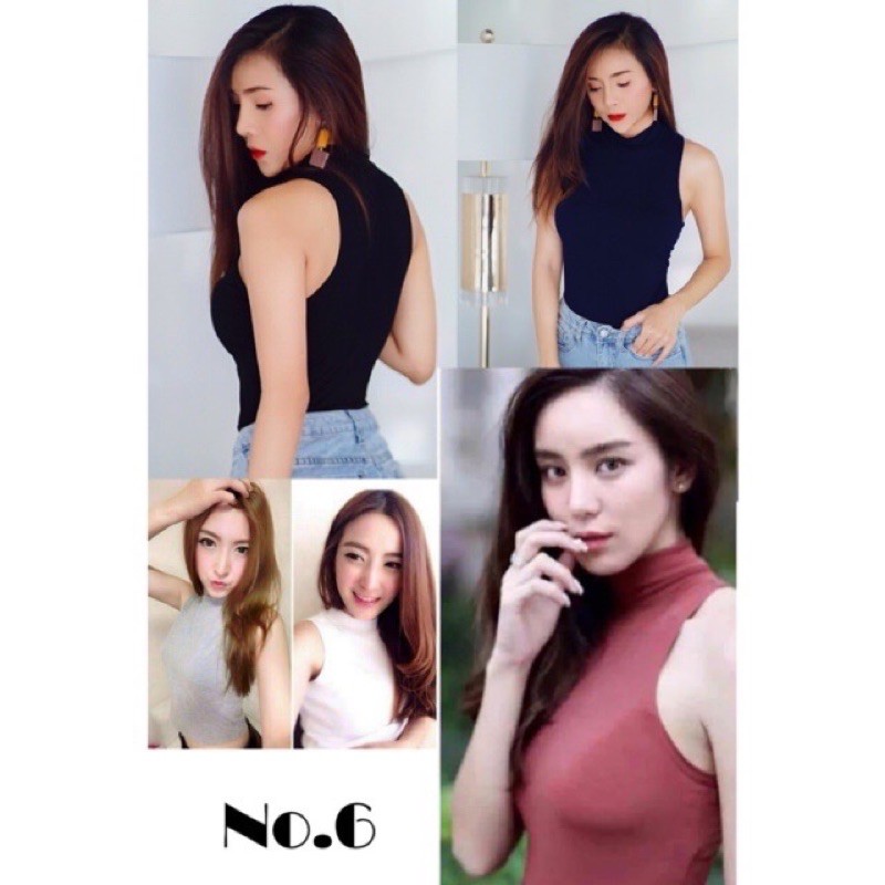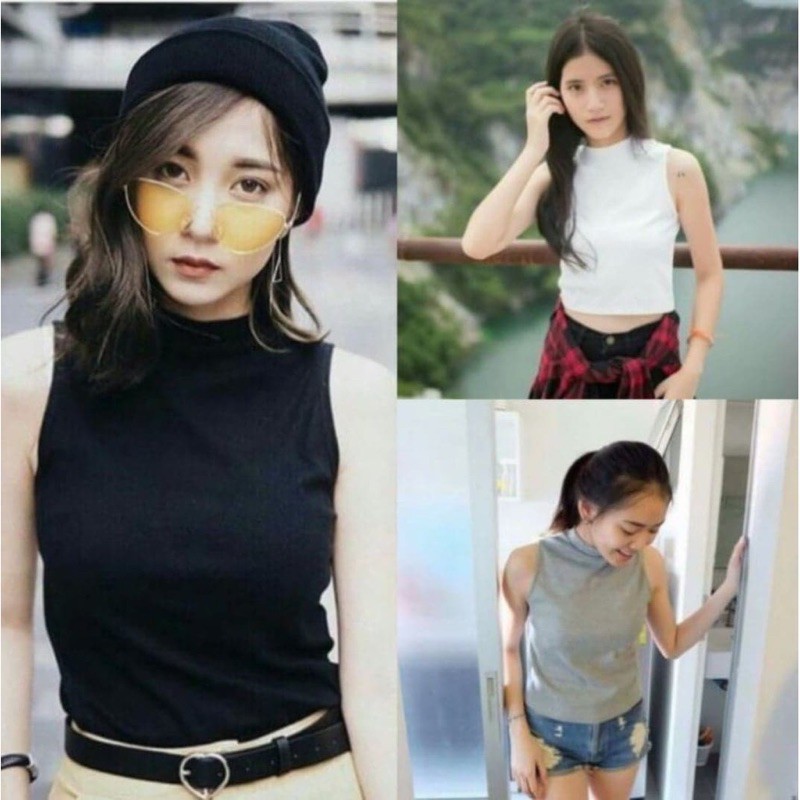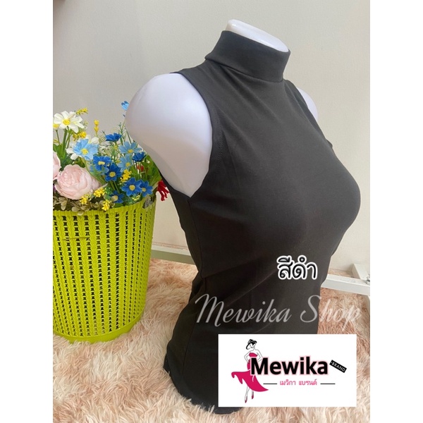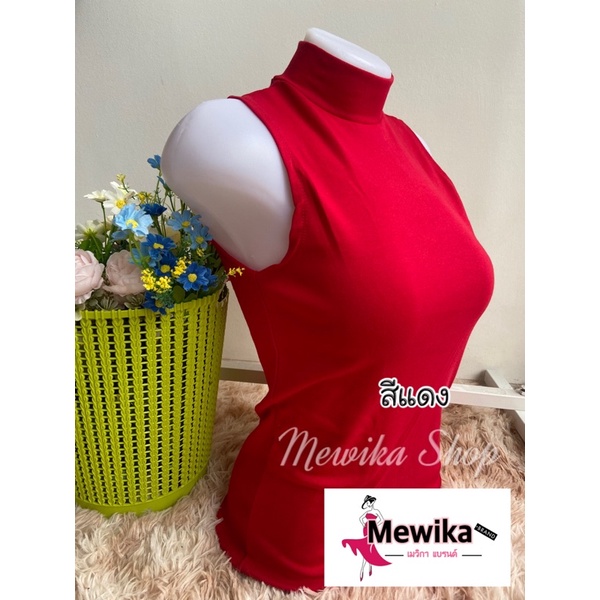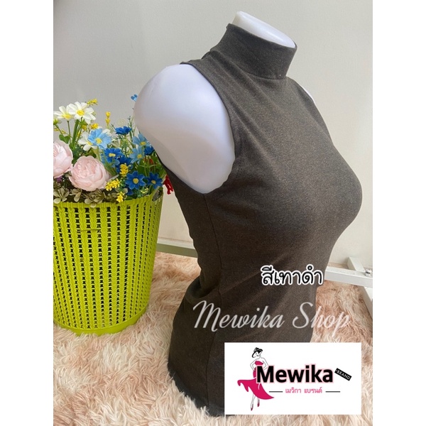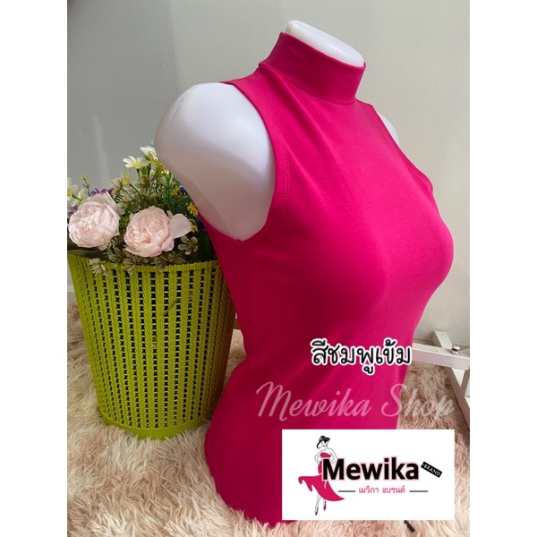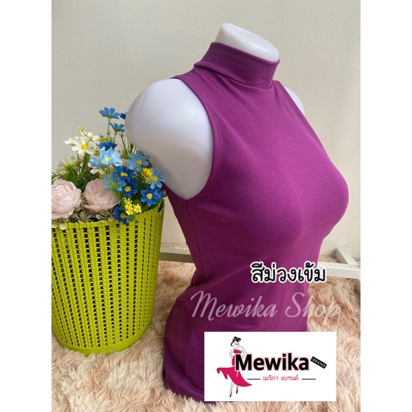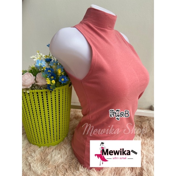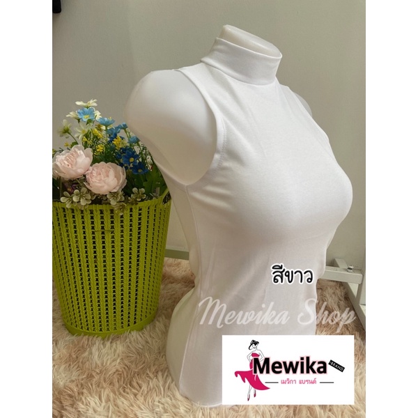 เสื้อยืดคอเต่าแขนกุด เต็มตัว สีพื้น ทรงสวย