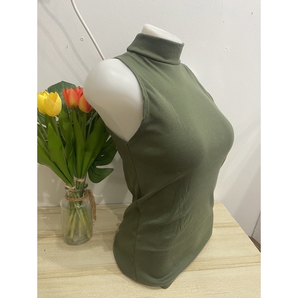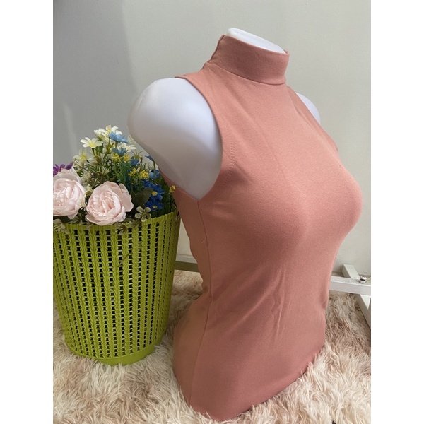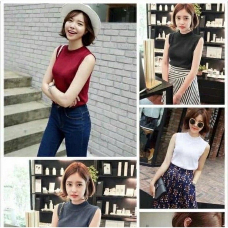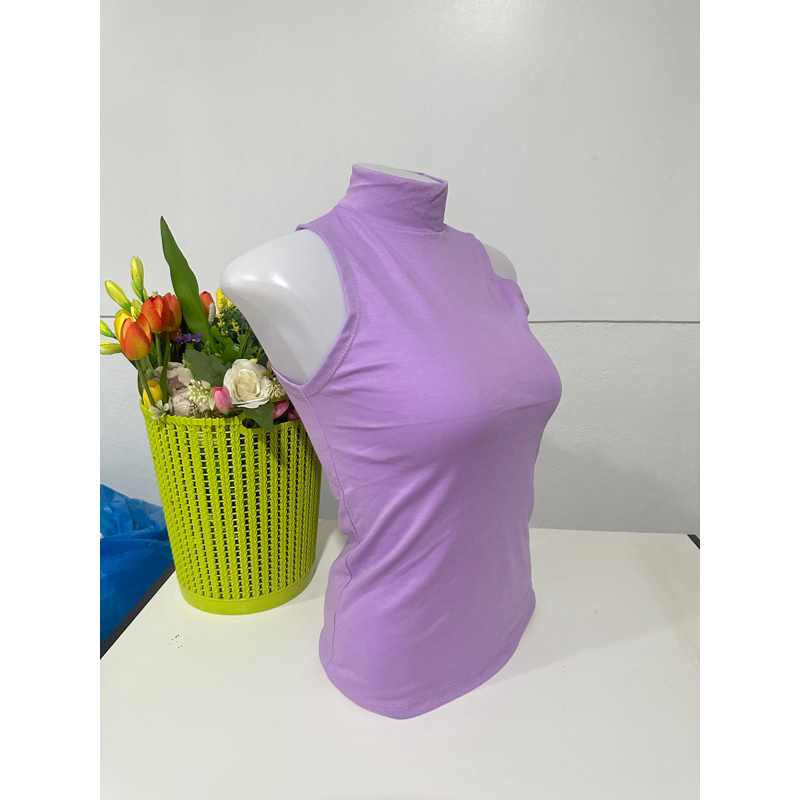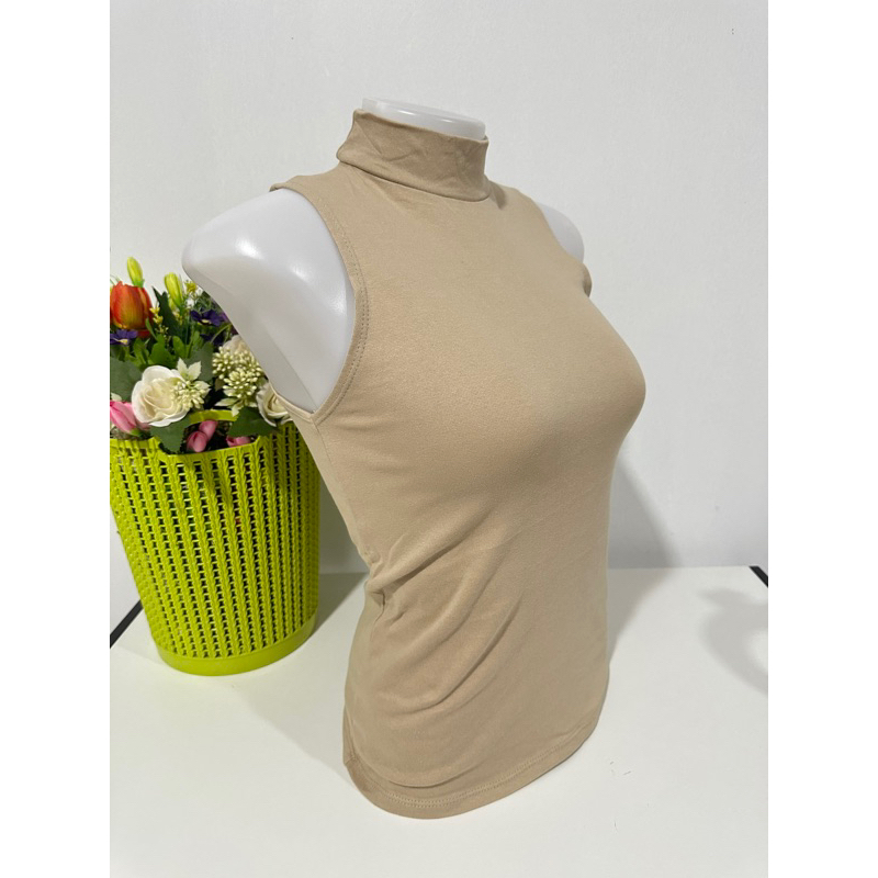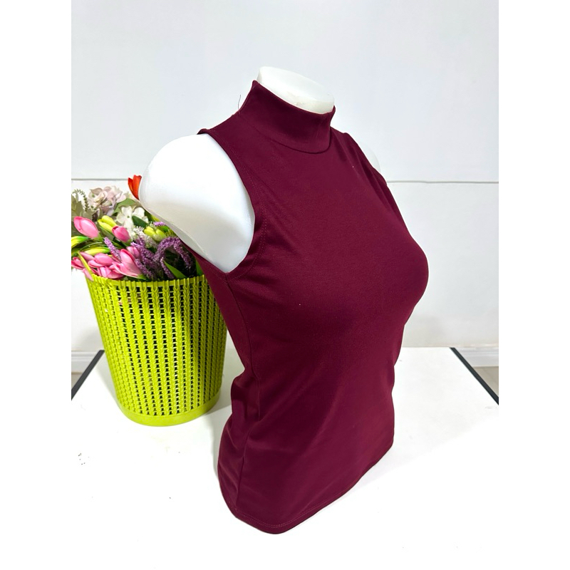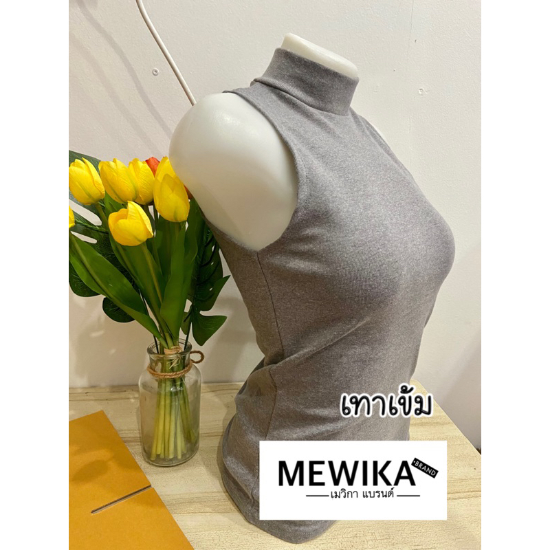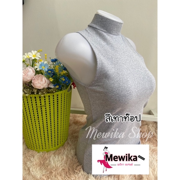 เสื้อยืดคอเต่าแขนกุด เต็มตัว สีพื้น ทรงสวย