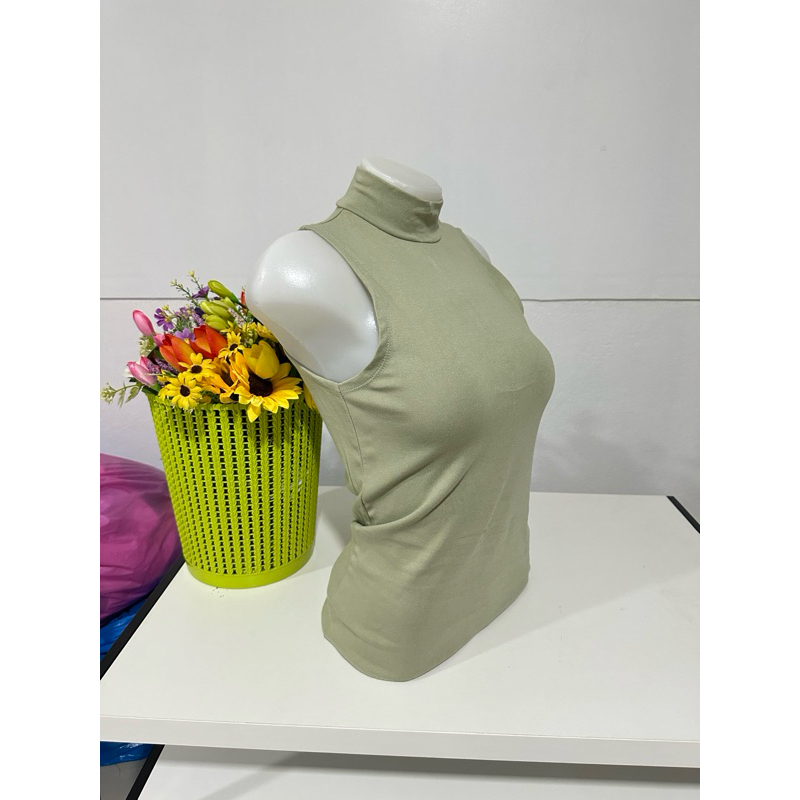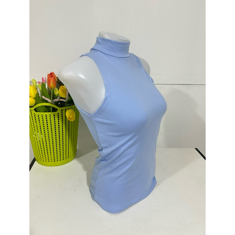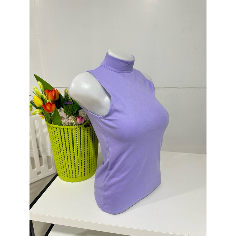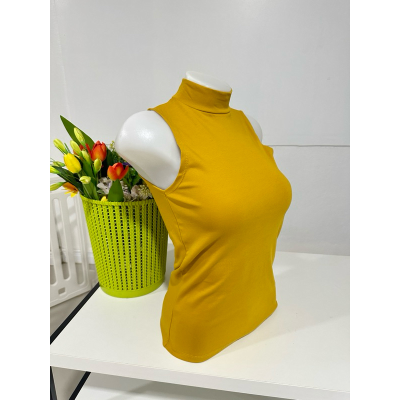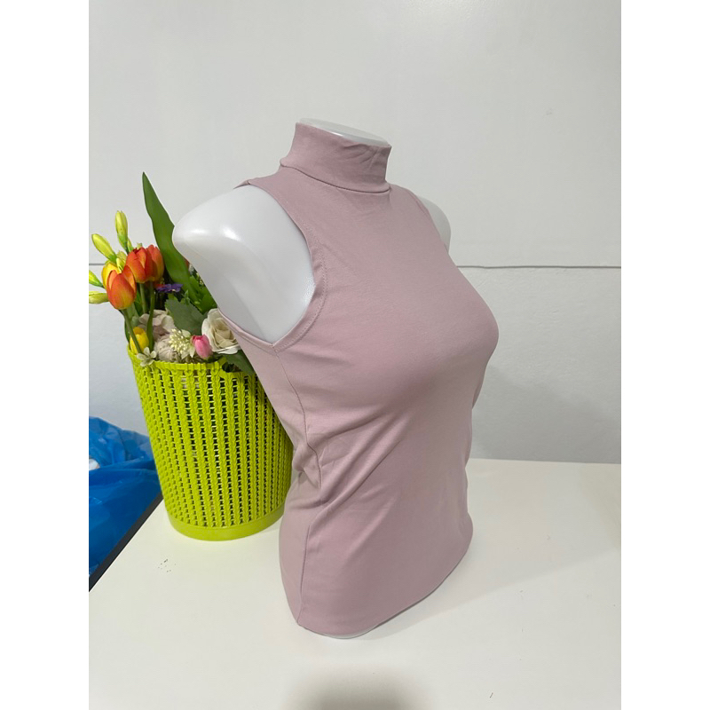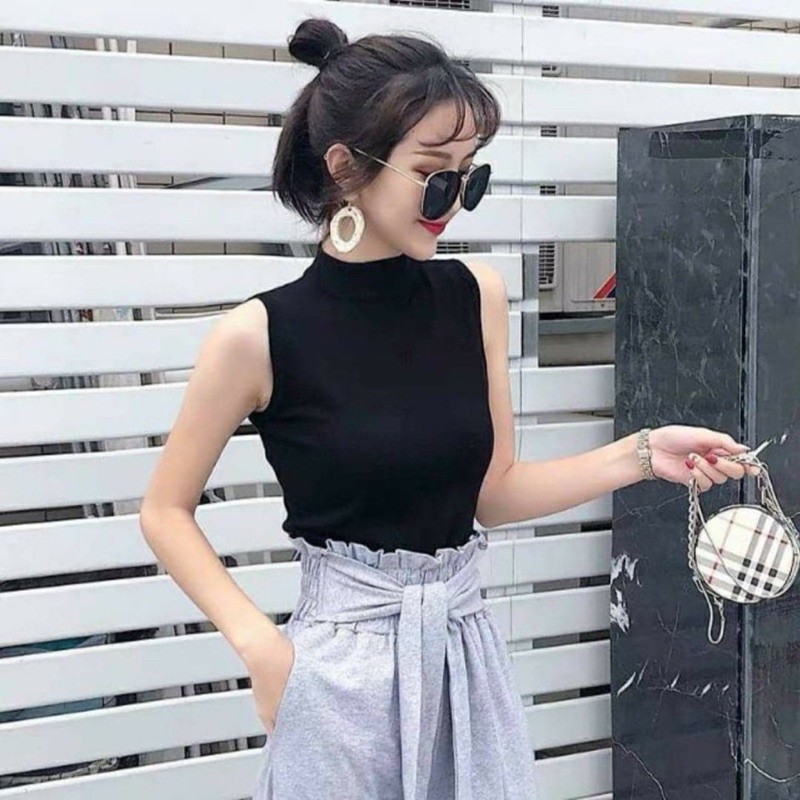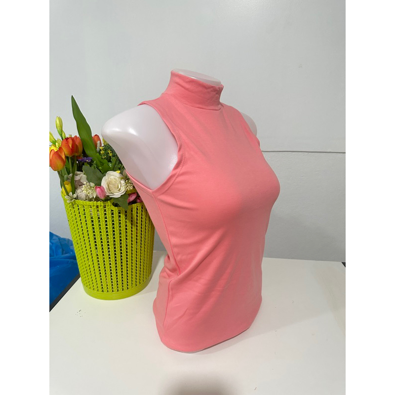 เสื้อยืดคอเต่าแขนกุด เต็มตัว สีพื้น ทรงสวย