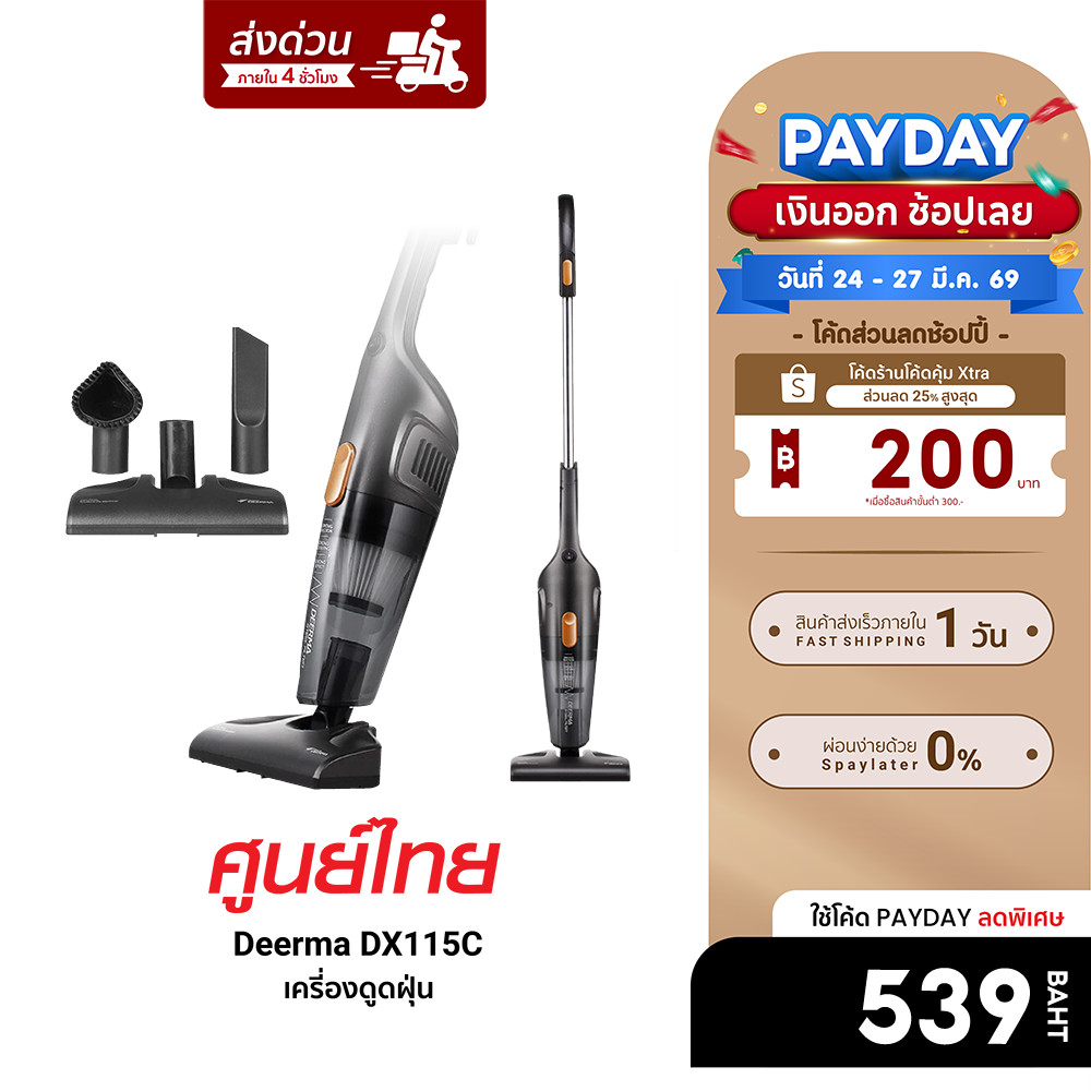 [ลดเหลือ 539] Deerma DX115C / DX118C Vacuum เครี่องดูดฝุ่นในบ้าน ถังเก็บฝุ่นความจุขนาดใหญ่ กรองฝุ่น 3ชั้น -1Y