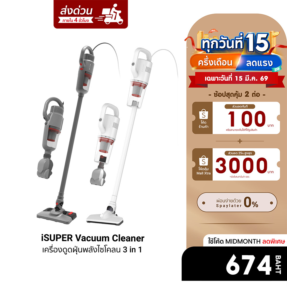 [ลดเหลือ 674] iSUPER Vacuum Cleaner 3 IN 1 / 3 IN 1 PRO เครื่องดูดฝุ่นมือถือ แรงดูดสูง เครื่องดูดฝุ่น พร้อมผ้าถูพื้น -1Y