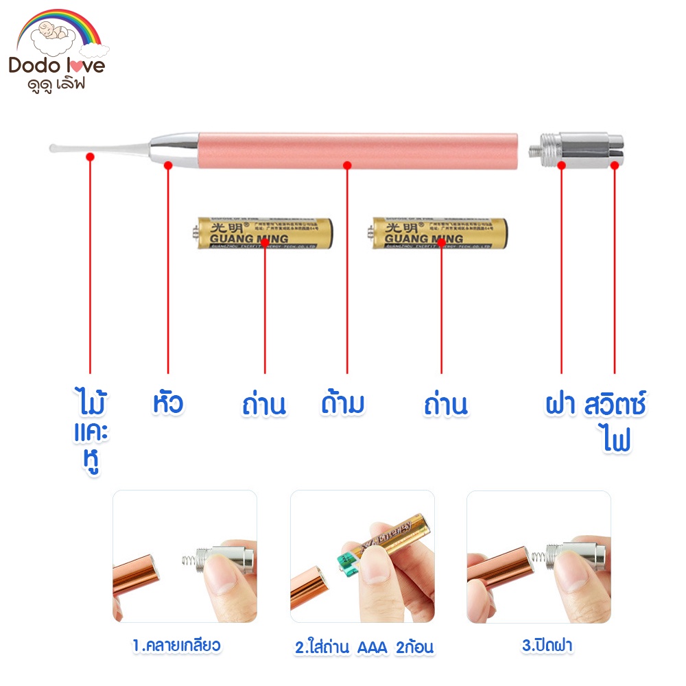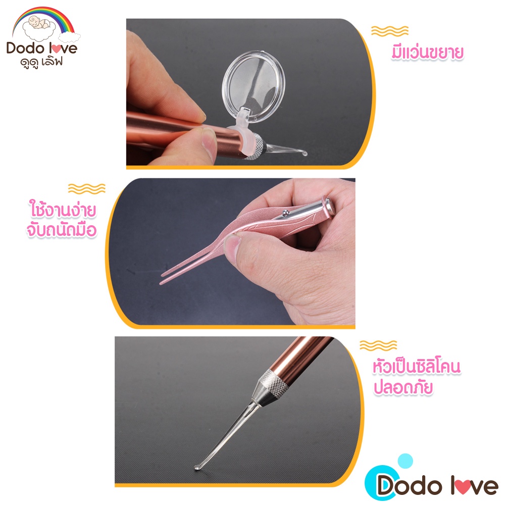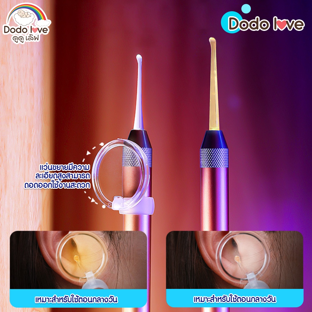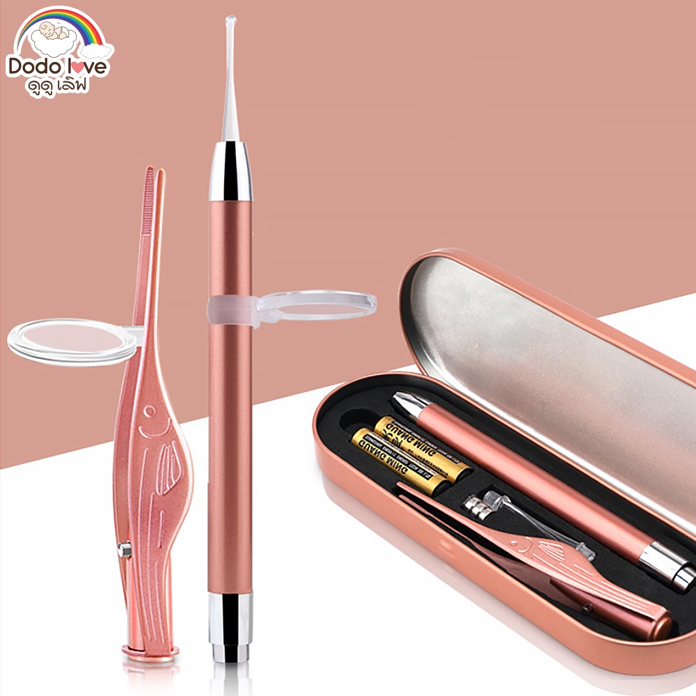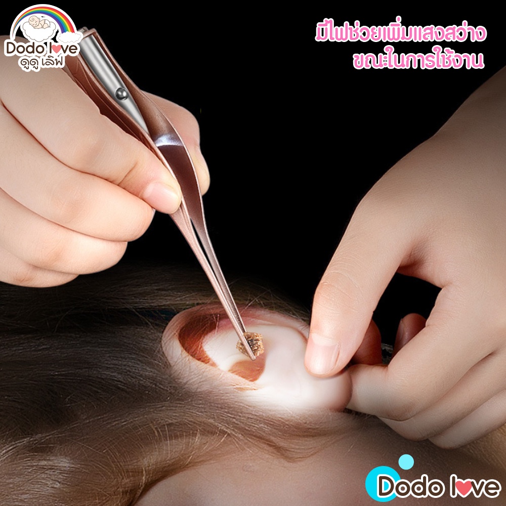 DODOLOVE ชุดแคะหูซิลิโคนเด็ก ที่แคะหูเด็ก ช้อนแคะหูสำหรับเ ด็กเด็ก แบบมีไฟ LED