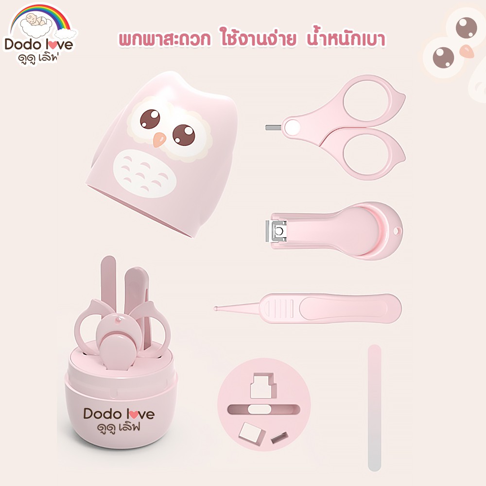 DODOLOVE ชุดกรรไกรตัดเล็บเด็กเล็ก 4 ชิ้น กรรไกรตัดเล็บ แหนบ ตะไบ กรรไกร หัวสั้น