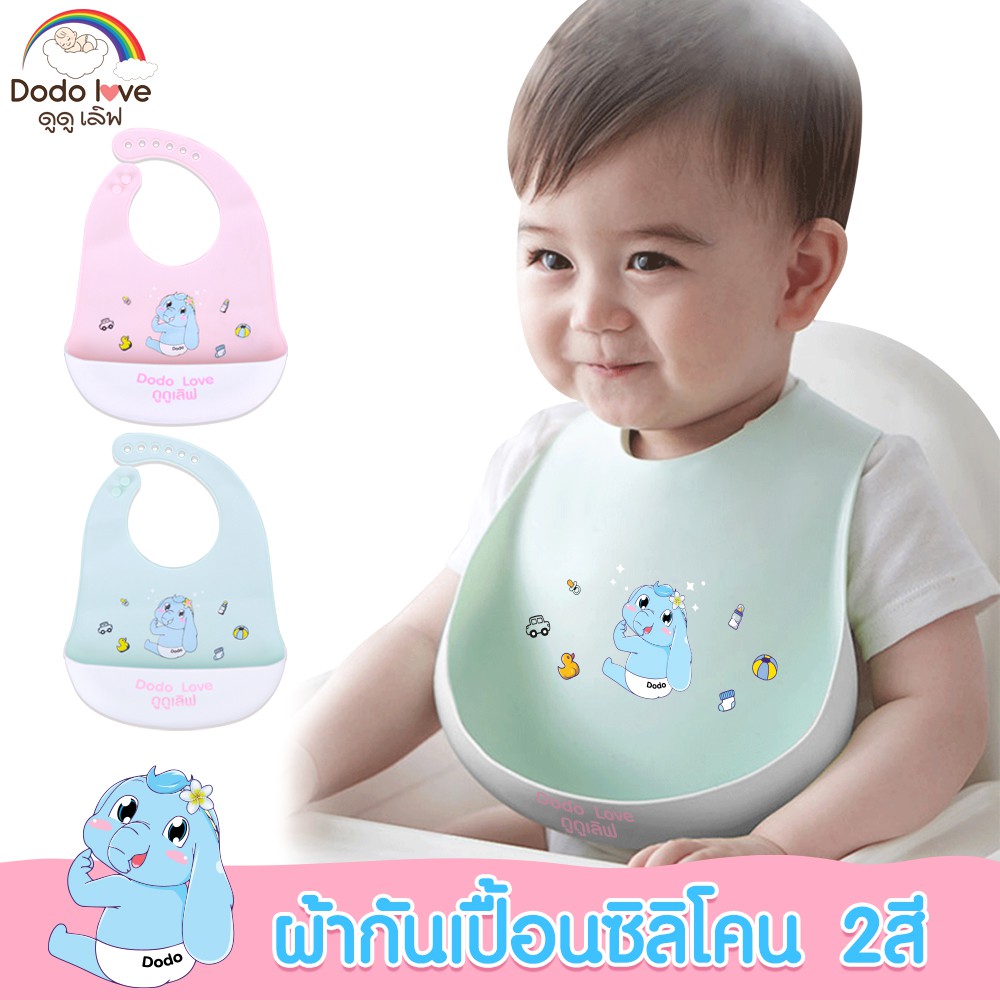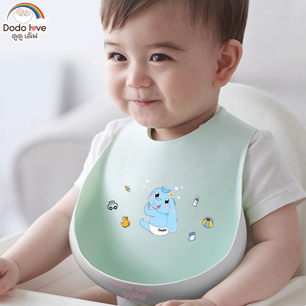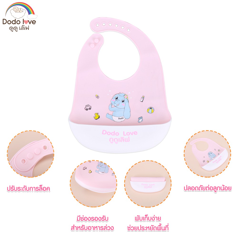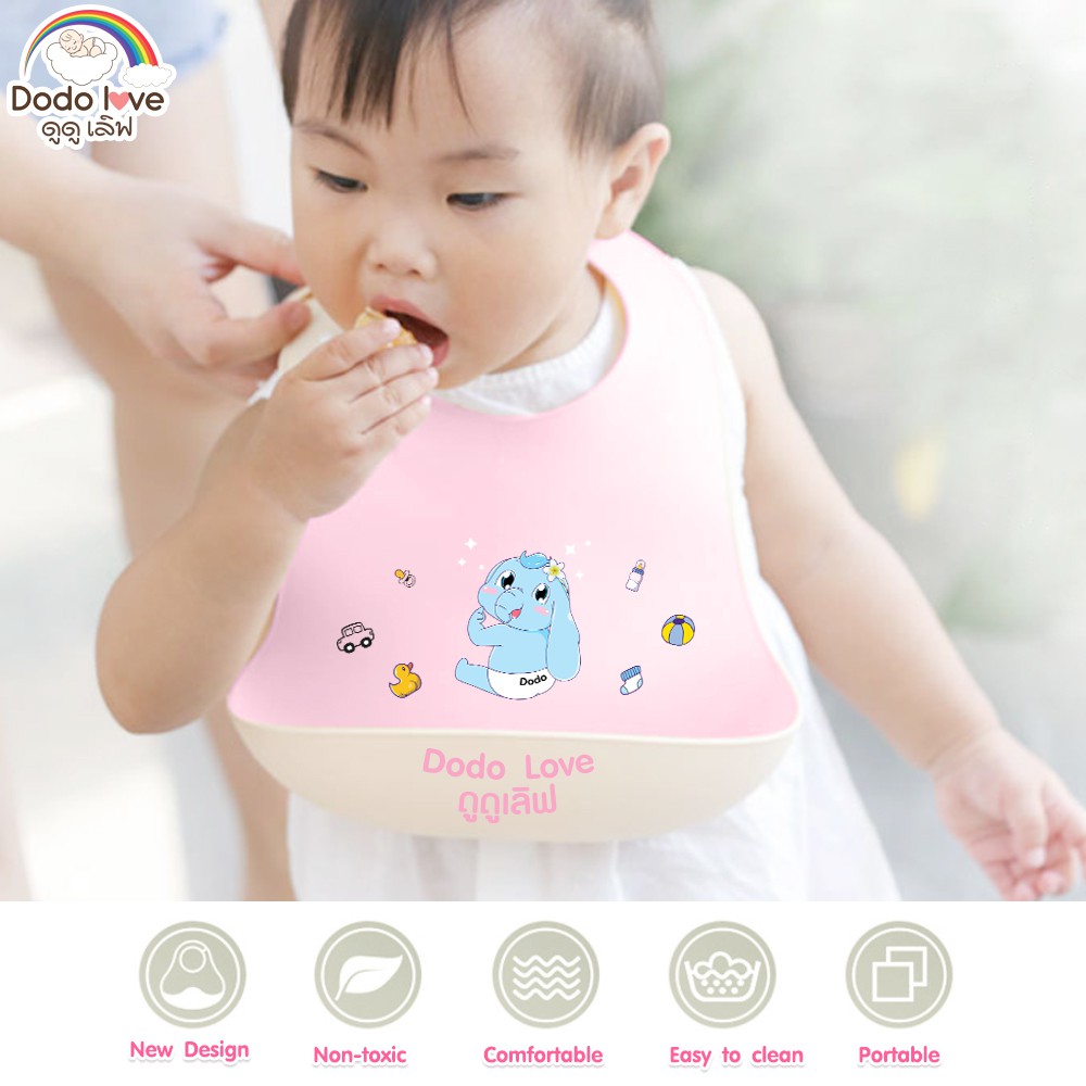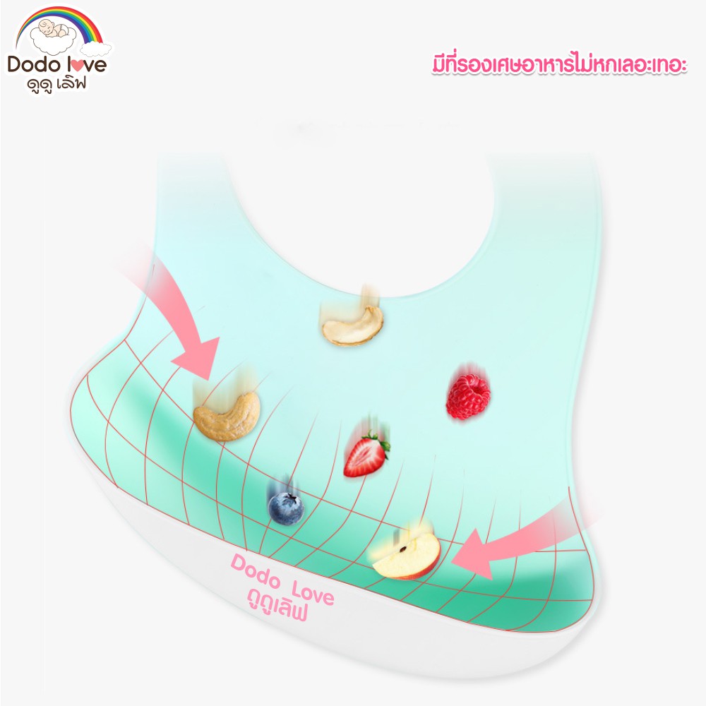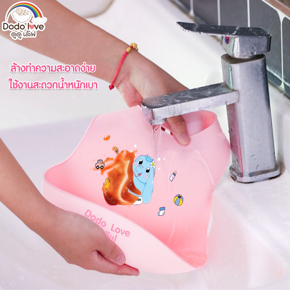 DODOLOVE ผ้ากันเปื้อนเด็ก ซิลิโคน กันเปื้อนเด็ก พร้อมถาดรอง