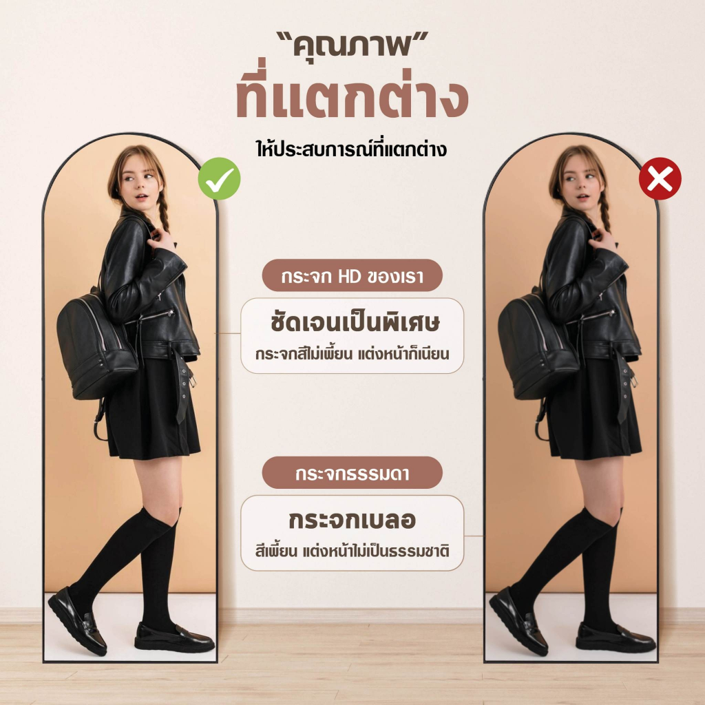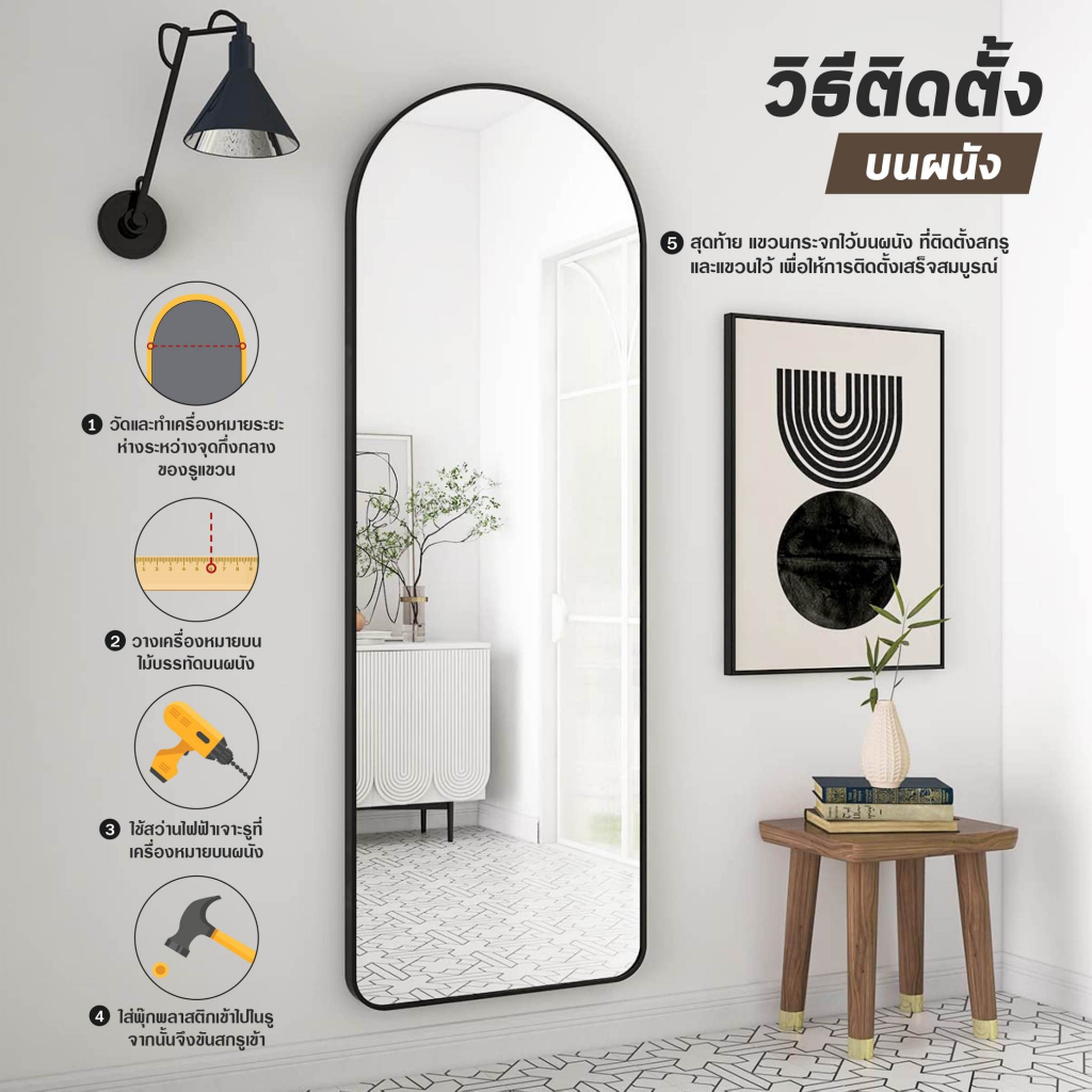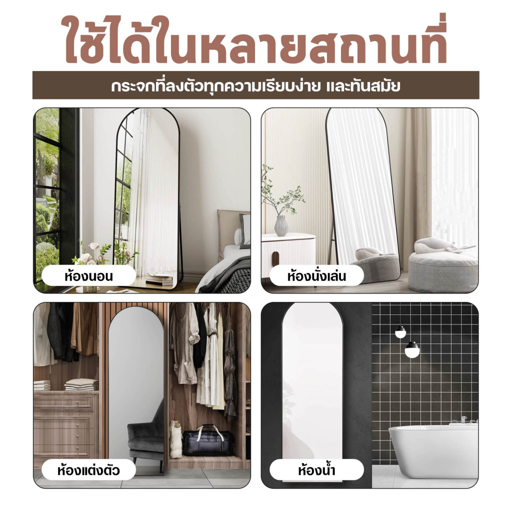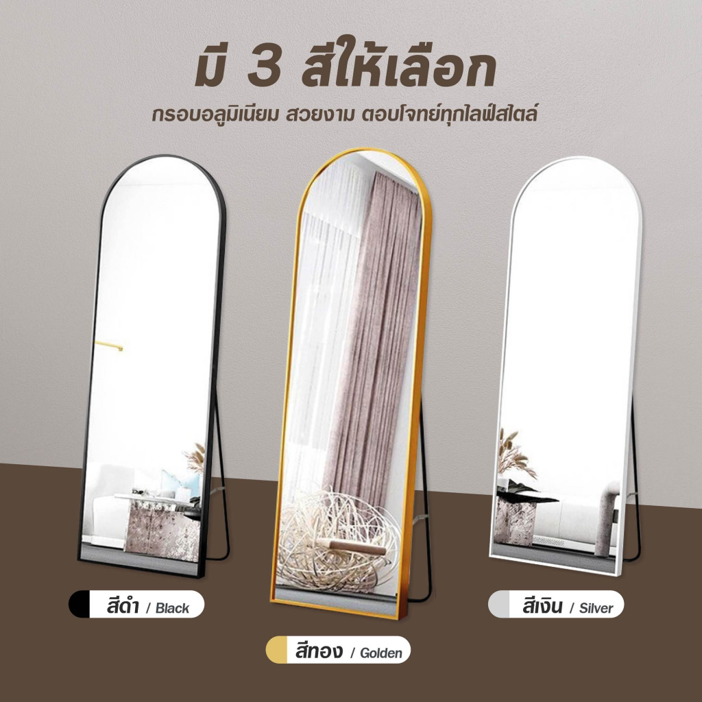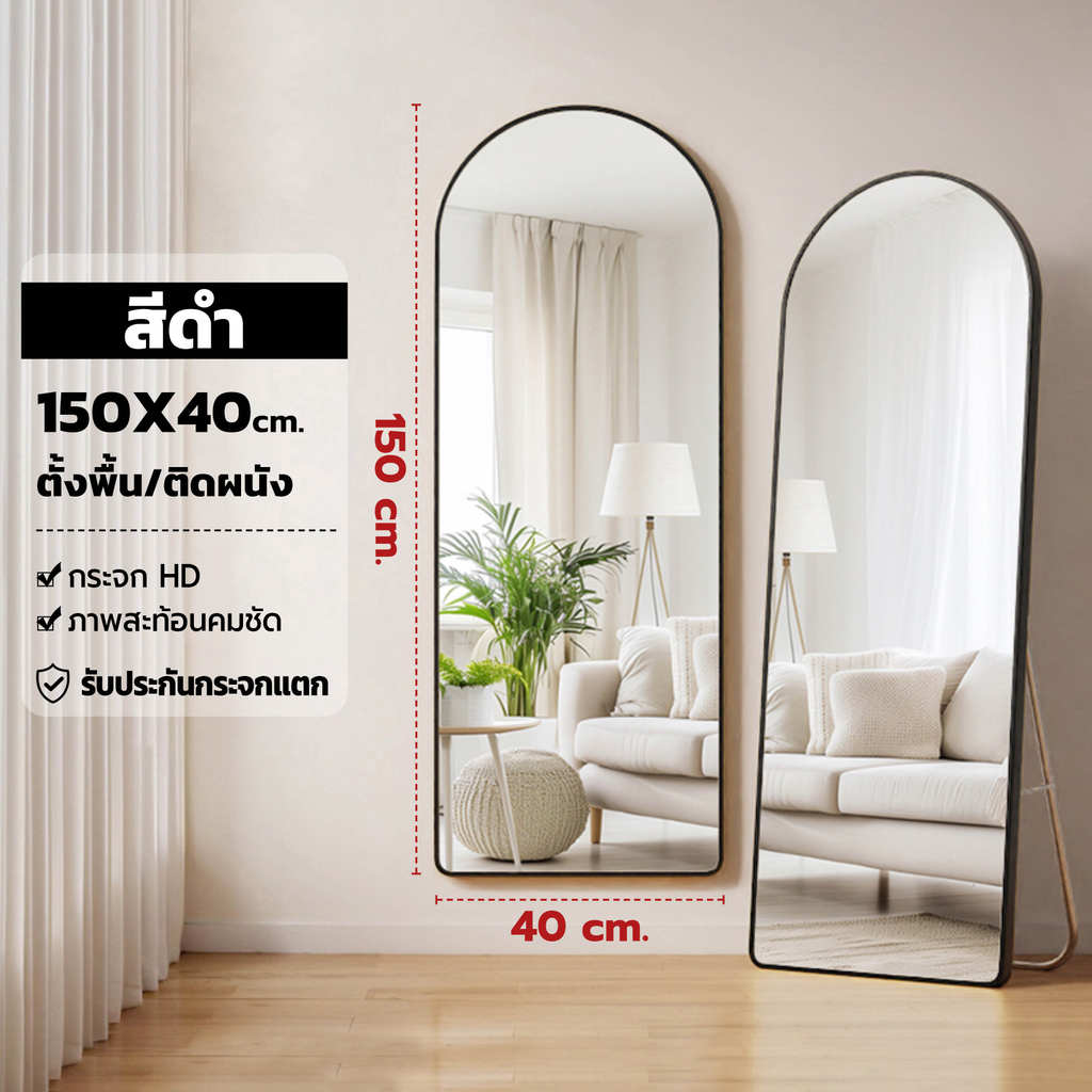 【ขนาดใหญ่ 】กระจกเต็มตัวโค้งมน กระจกยาว ตั้งพื้น กรอบแคบ 150-165CM มีขาตั้งพื้นได้ แขวนผนังได้ ไม่ต้องประกอบ ประกันแตก