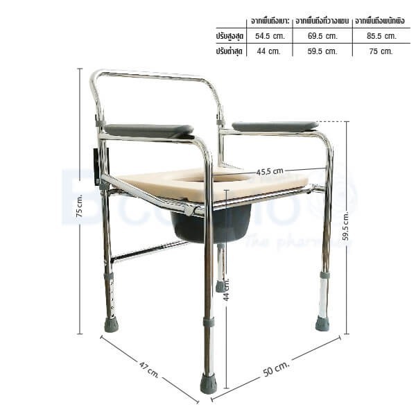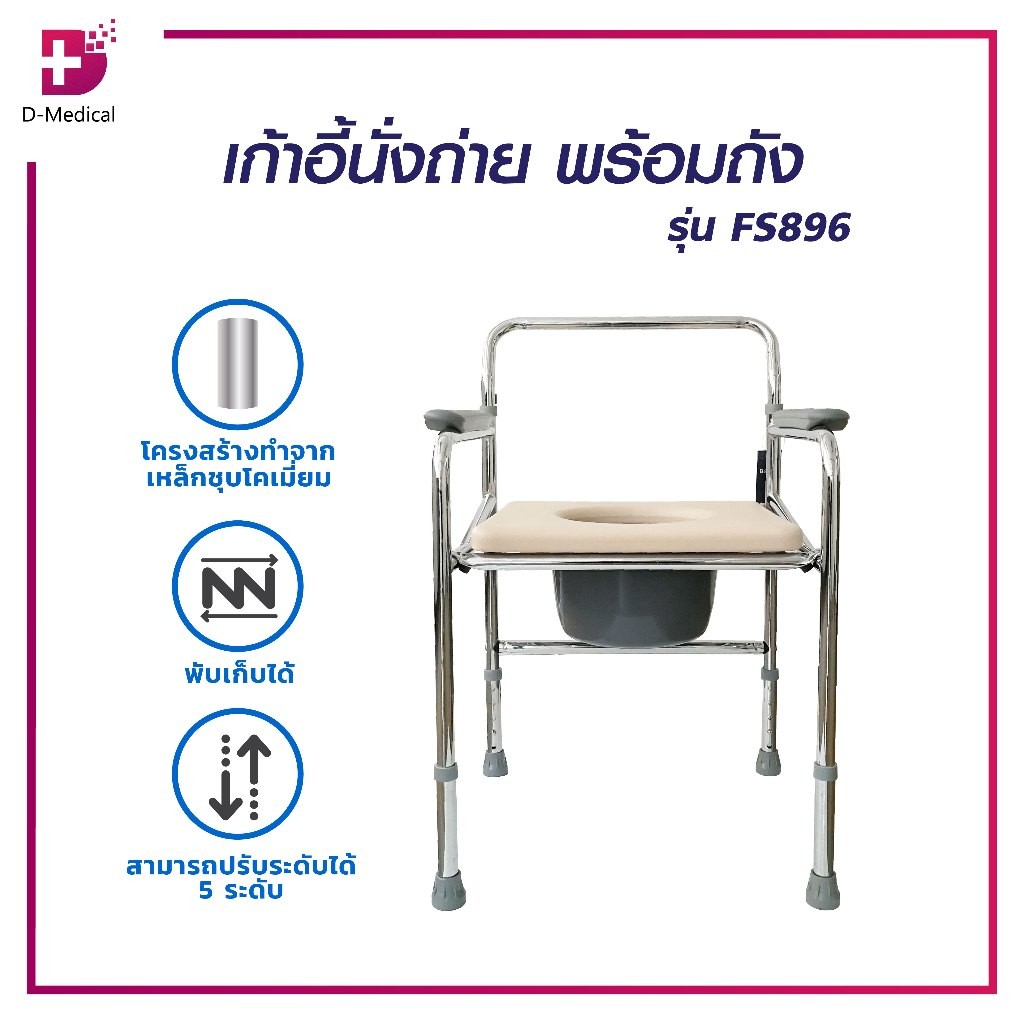 [1ชิ้นต่อ 1 คำสั่งซื้อ] เก้าอี้นั่งถ่ายพร้อมถัง พับเก็บได้ ปรับระดับสูง-ต่ำได้ 5 ระดับ เหมาะกับผู้สูงอายุ /D-MEDICAL