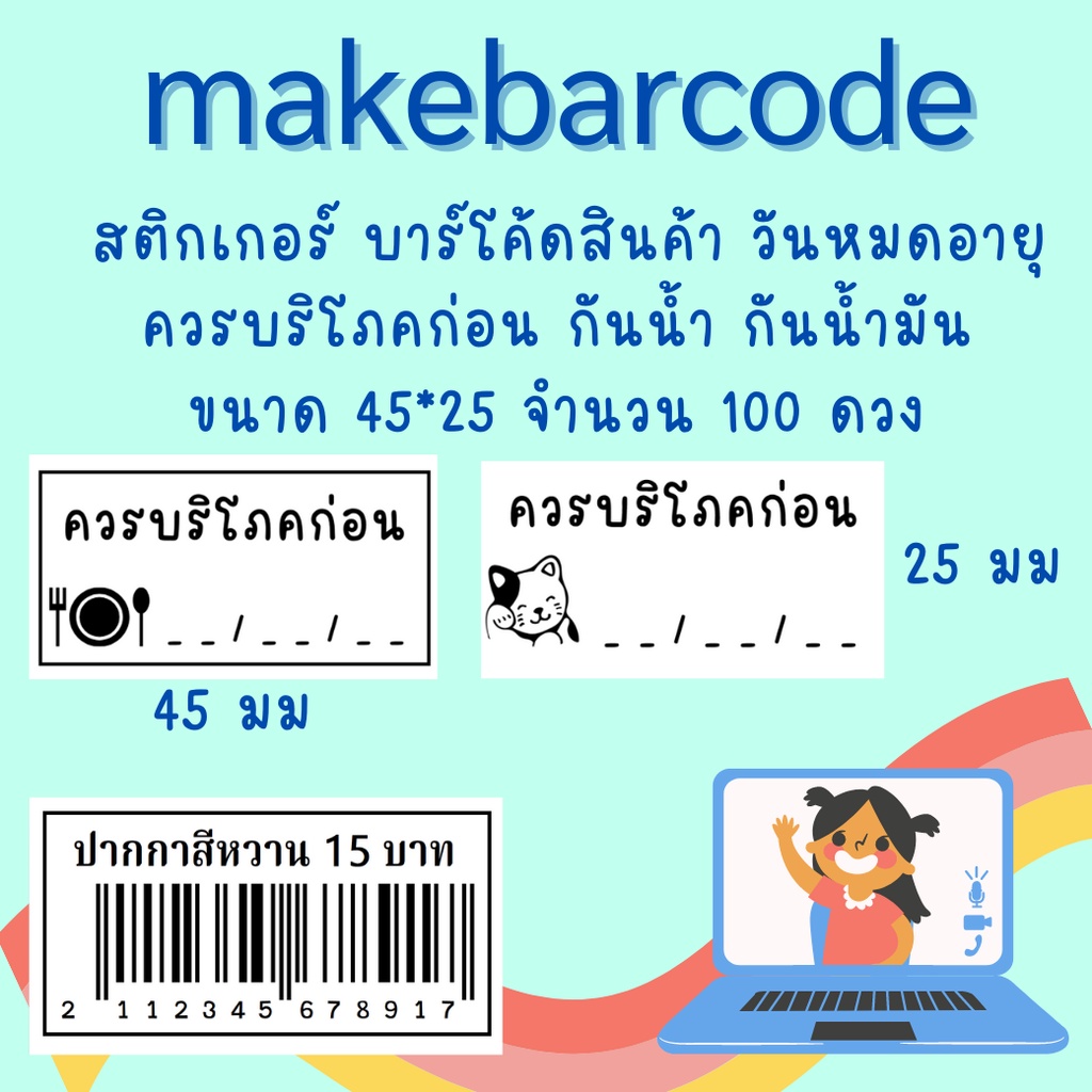 รับพิมพ์บาร์โค้ด ฉลากวันหมดอายุ ฉลากชื่อสินค้า พื้นขาว หมึกดำ ใช้สติกเกอร์กันน้ำ หมึกกันรอยขีดข่วน 100 ใบ 35 บาท