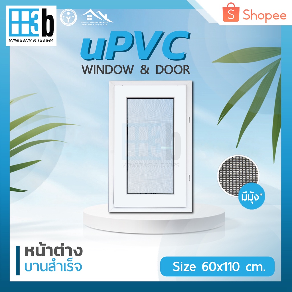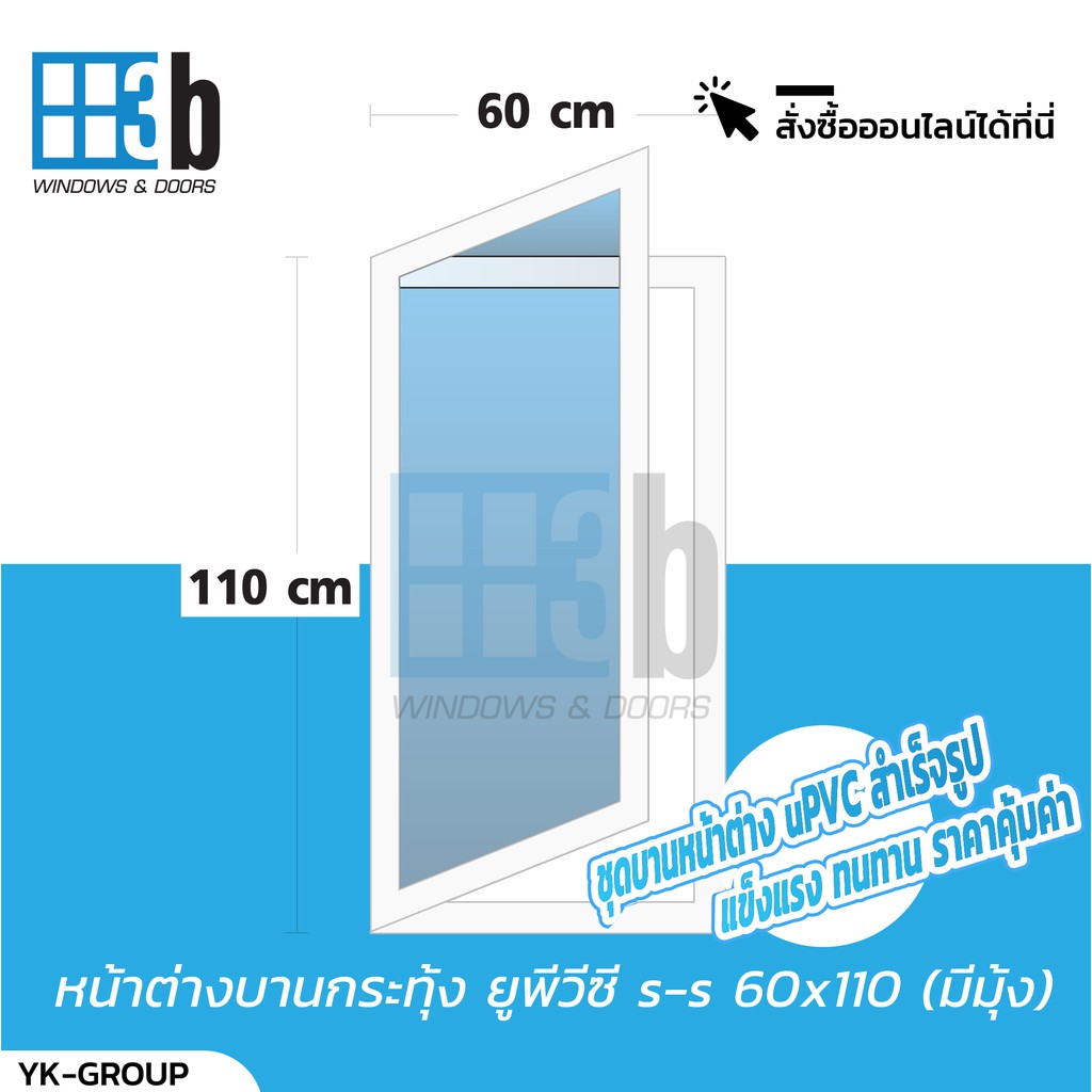 หน้าต่างบานเปิดเดี่ยว uPVC บานสำเร็จ ยี่ห้อ 3B 60 x 110 ซม.