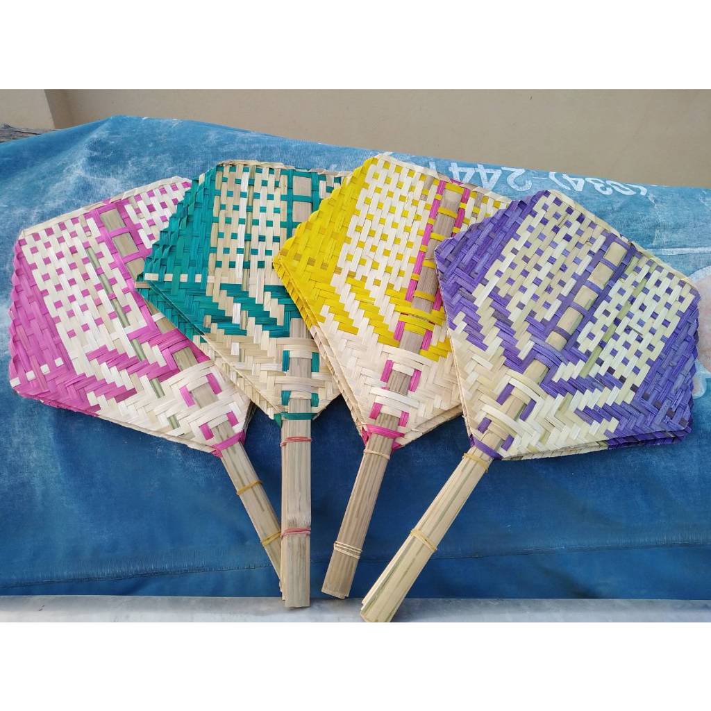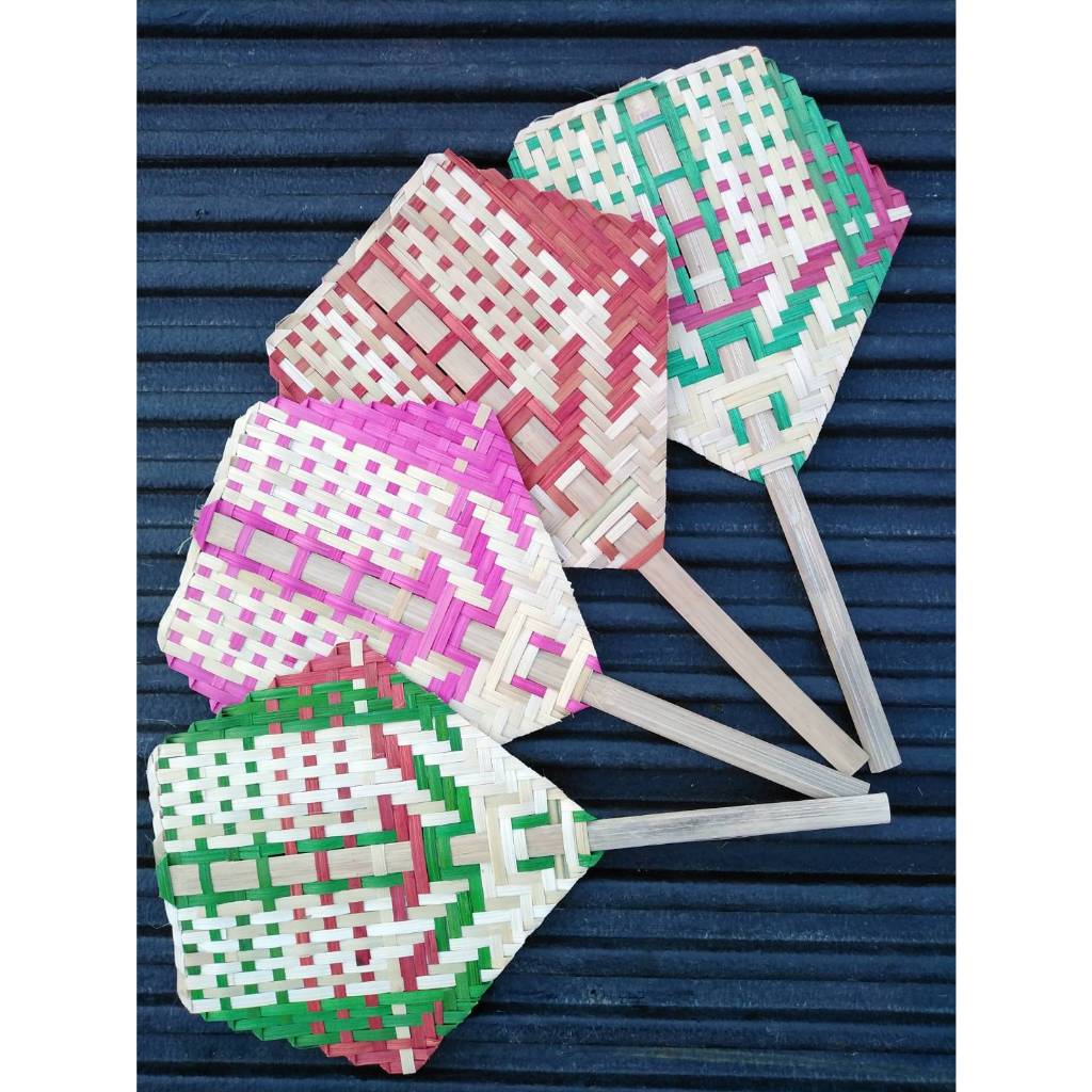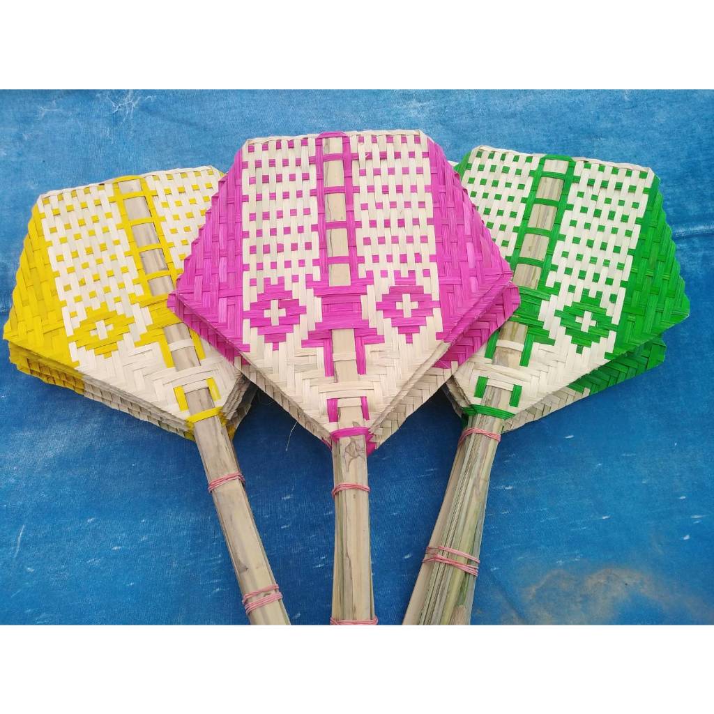 พัดสานไม้ไผ่ (ขนาด 7-12 นิ้ว) พัดห้าเหลี่ยม พัดเตา (คละสี) พัดมือจับ พัดโบราณ แต่ละรุ่นลวดลายอาจแตกต่างกันไป