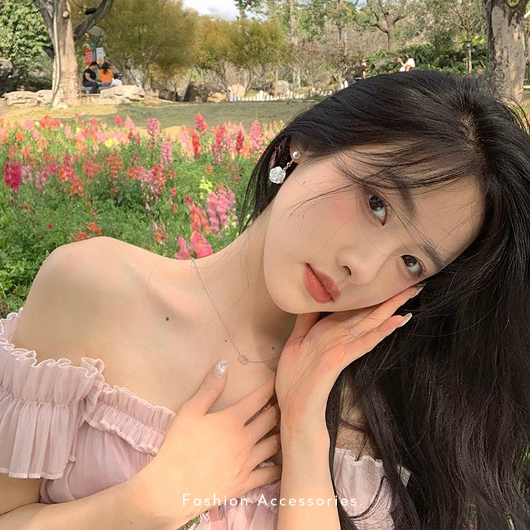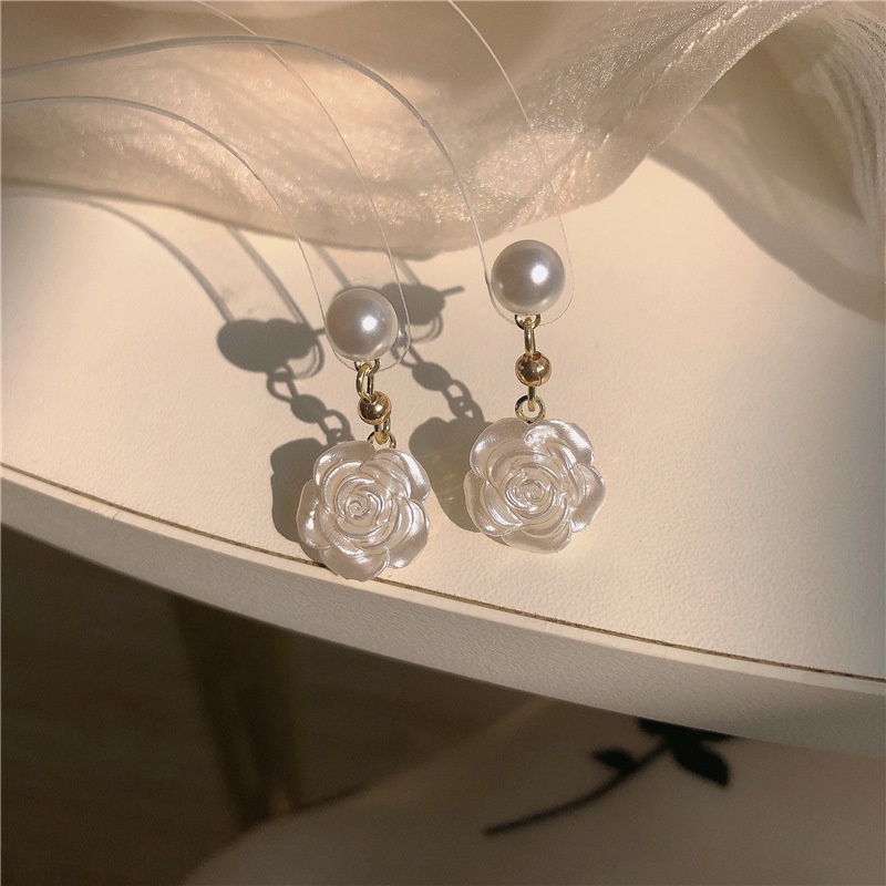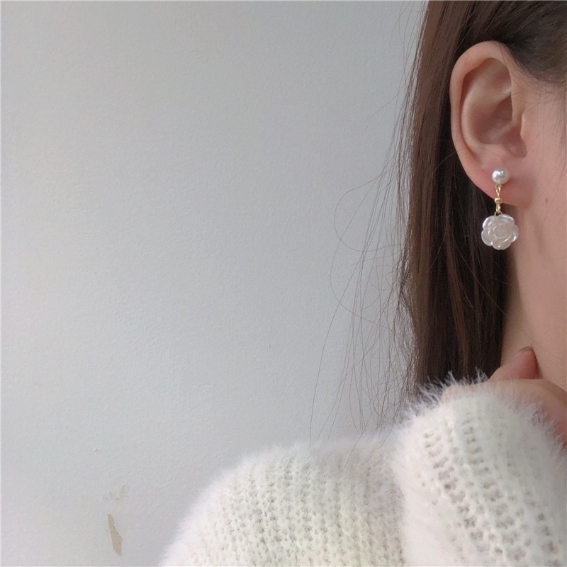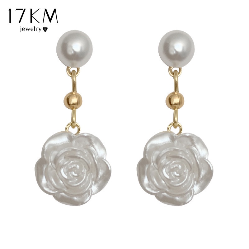 17KM หวาน ดอกคามิเลีย หยด ต่างหู มุก ทอง ต่างหู สําหรับผู้หญิง เครื่องประดับ อุปกรณ์