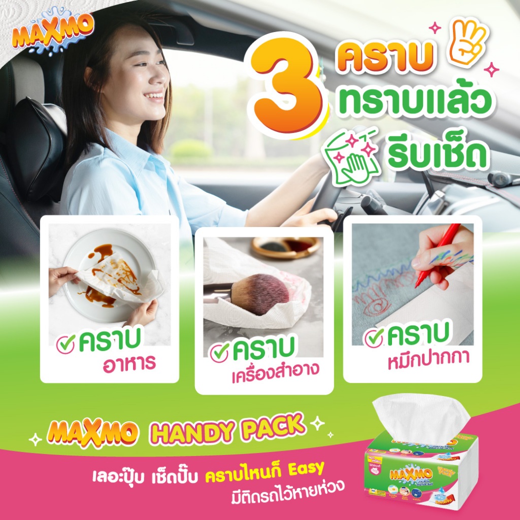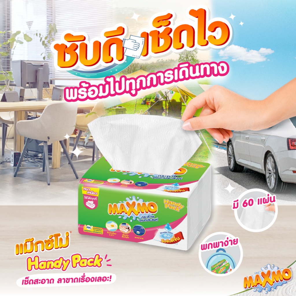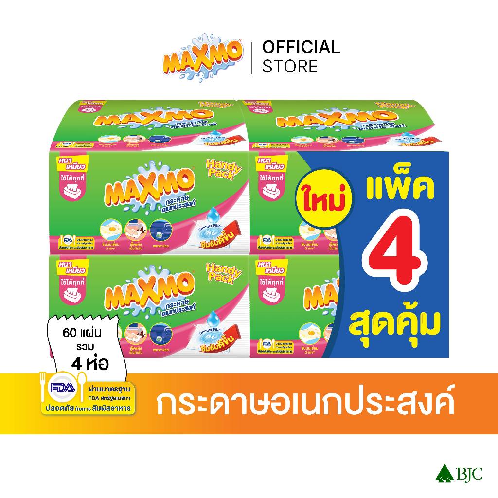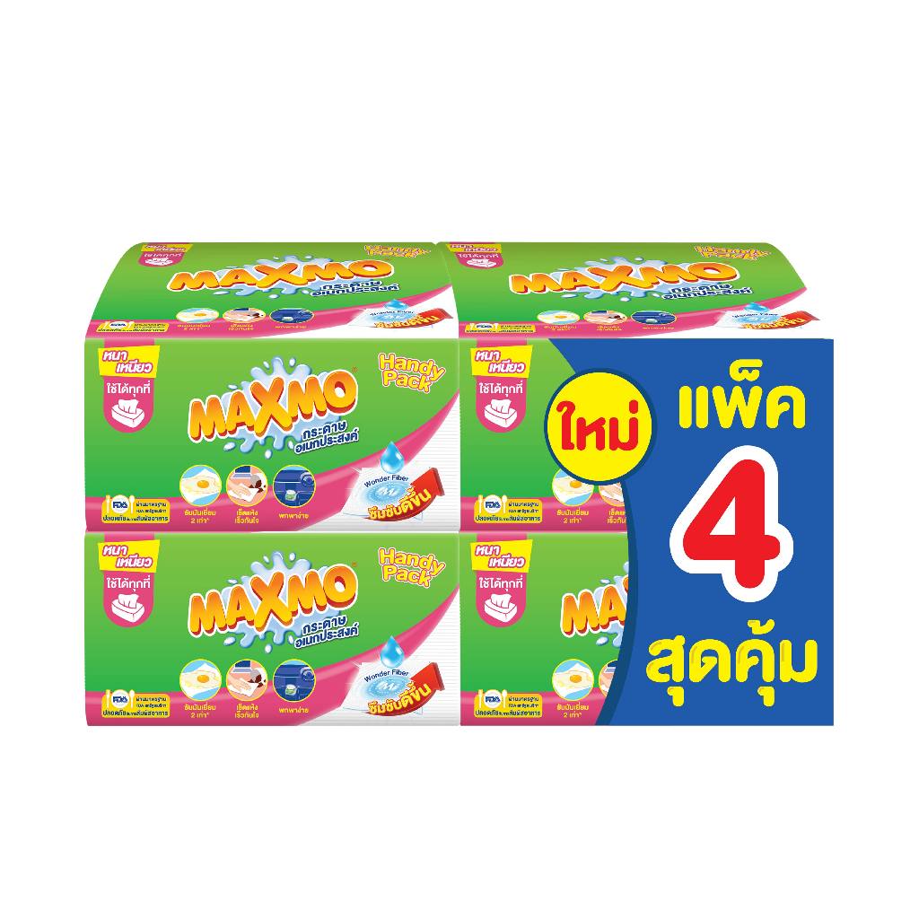 แม๊กซ์โม่ แฮนดี แพ็ค แบบแผ่น 60 แผ่น แพ็ก 4 ห่อ Maxmo Interfolded Handy Pack 60'S P.4 กระดาษซับเอนกประสงค์ แบบแผ่น