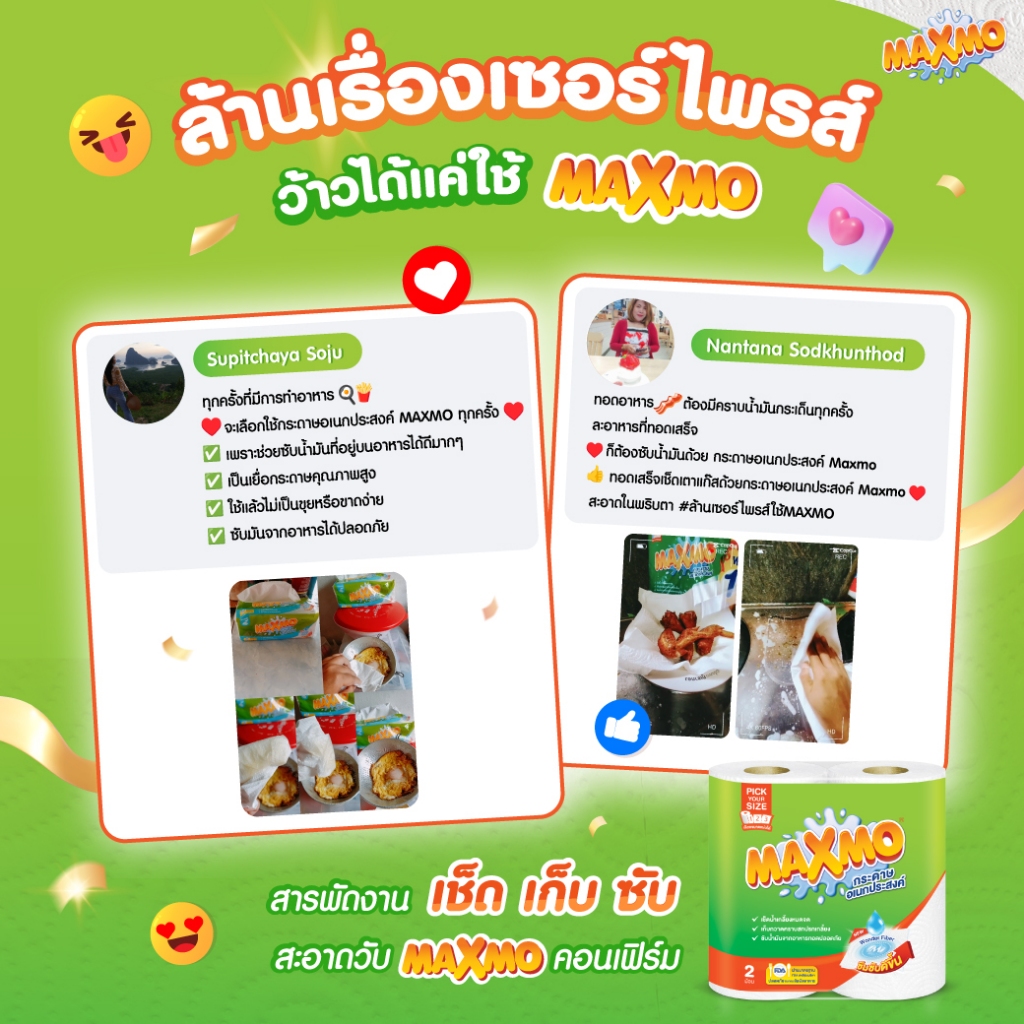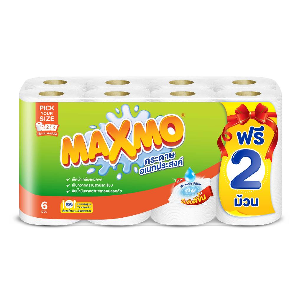 แม๊กซ์โม่ พิคยัวร์ไซค์ 6 ม้วน ฟรี 2 ม้วน Maxmo Pick Your Size 6'R +2 กระดาษซับเอนกประสงค์ แบบม้วน รุ่นพิเศษ