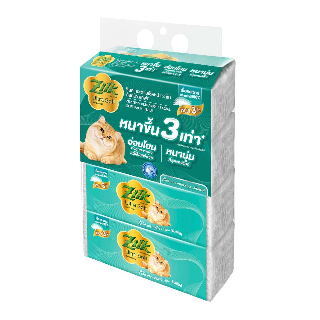 Zilk ซิลค์ กระดาษเช็ดหน้า 3 ชั้น อัลตร้า ซอฟท์ แพ๊ค 4 (เลือกจำนวน)