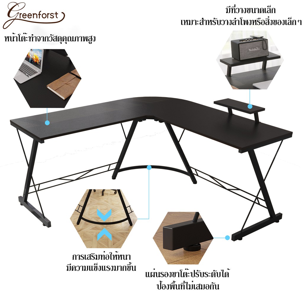 Greenforst โต๊ะคอมพิวเตอร์ นั่งทำงานรูปตัว L ดีไซน์ใหม่ทรงทันสมัย รุ่น A-2234/A-2279