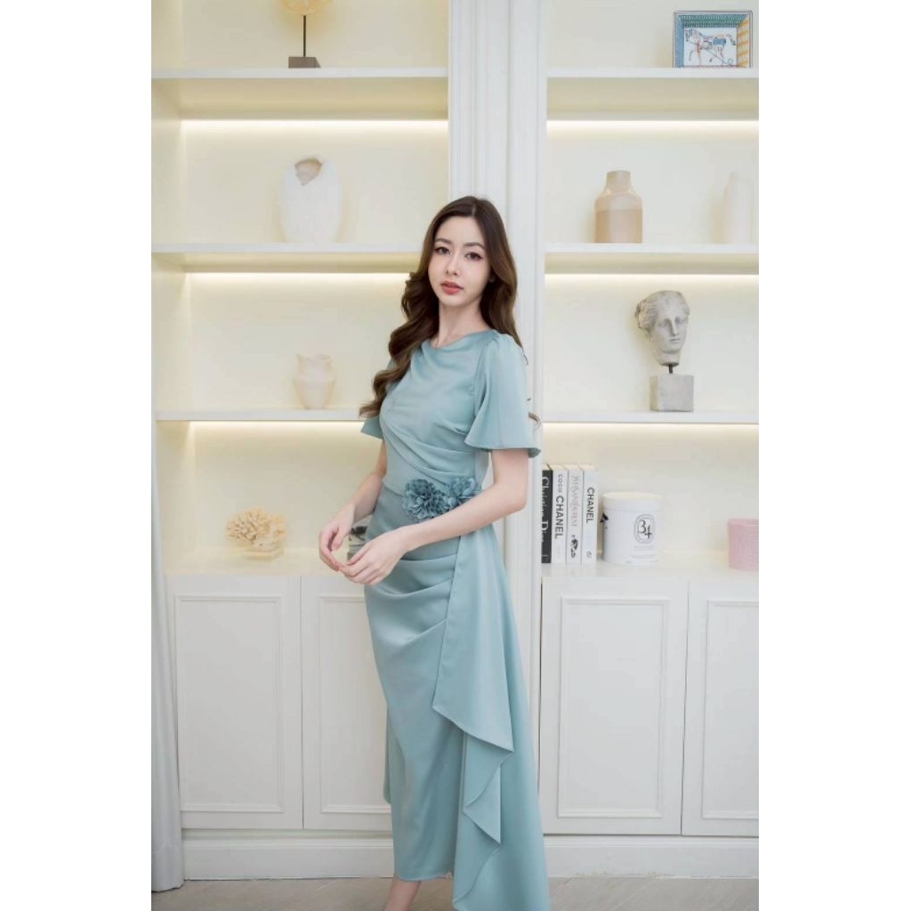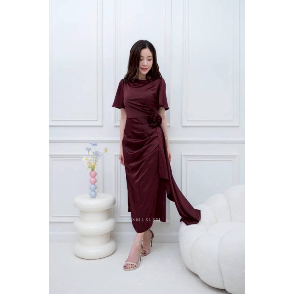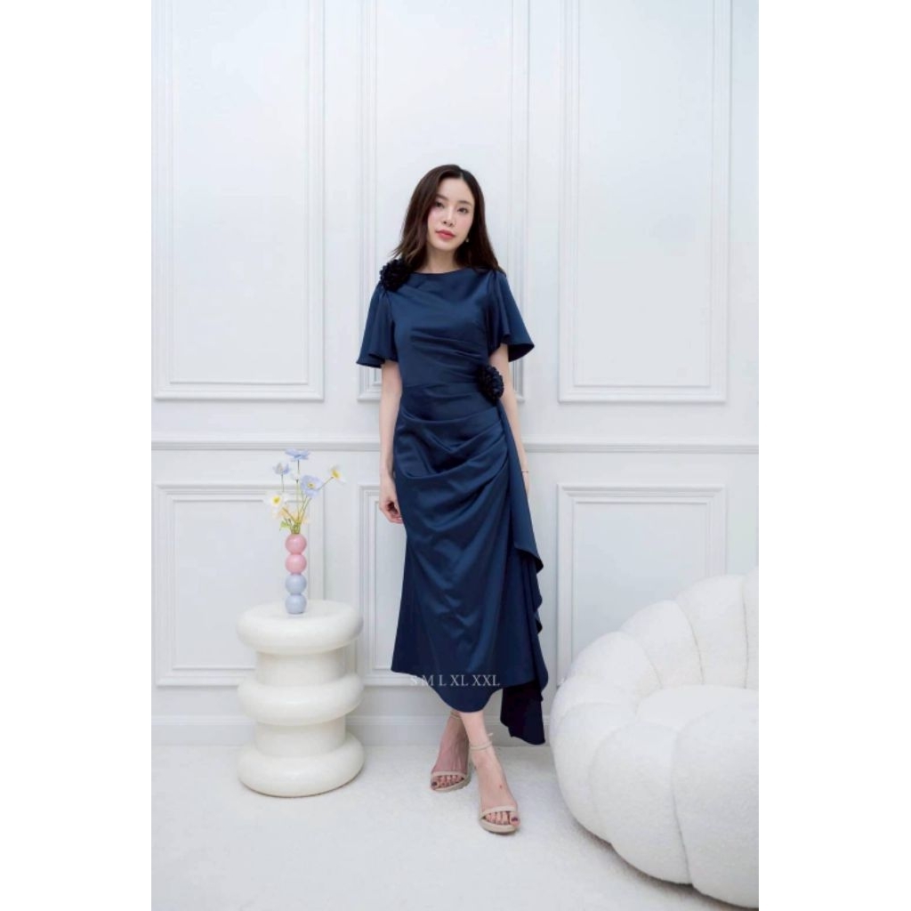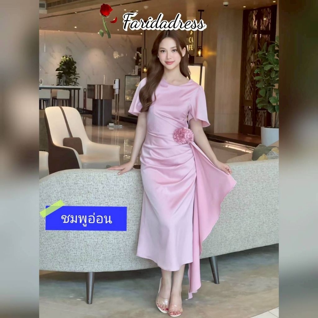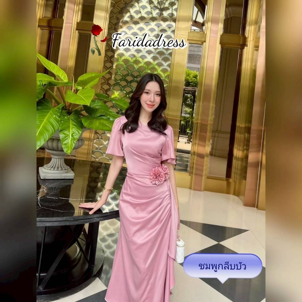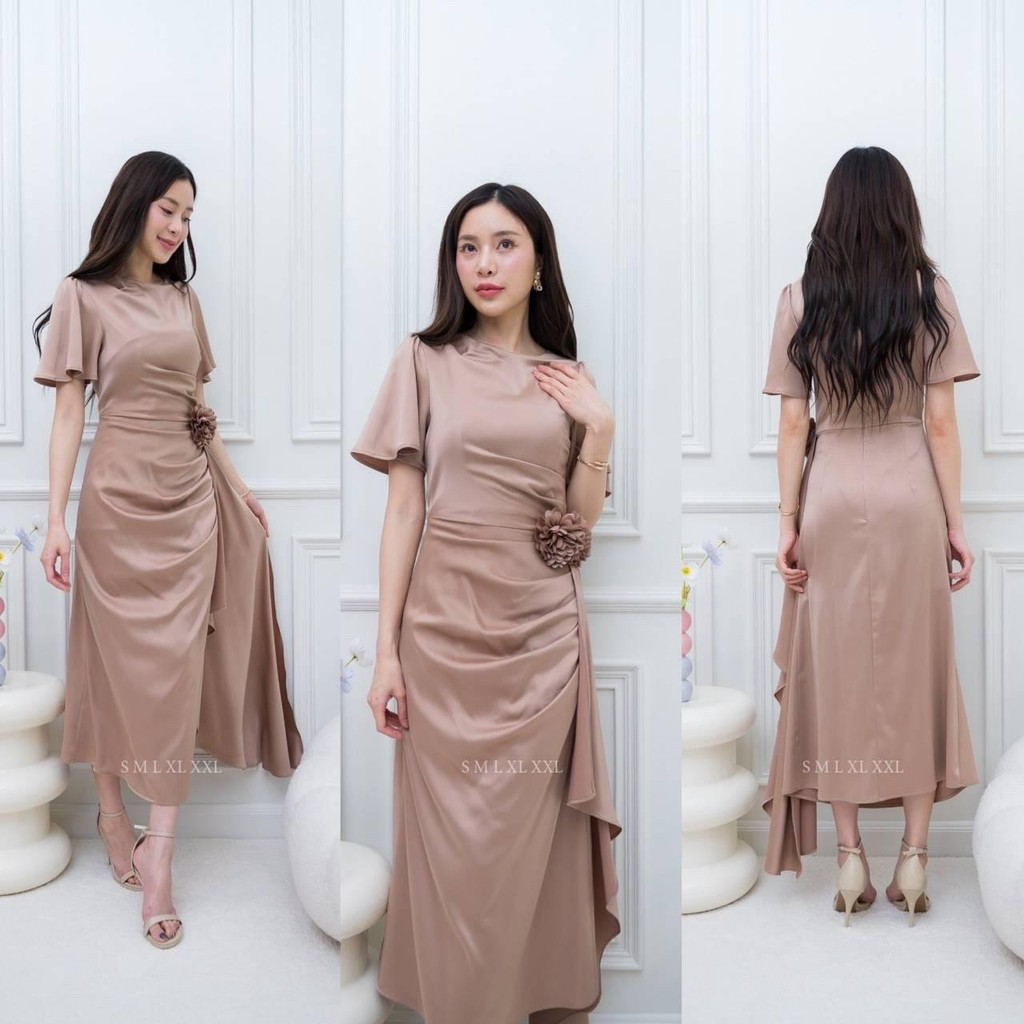 ชุดออกงาน เดรสสวยๆ TP039 ชุดไปงาน ผ้าเครปซาติน คอกลม สไบข้างกระโปรง ซับใน ซิปหลัง เดรสยาว ผู้หญิง เสื้อผ้า Lady Dresses