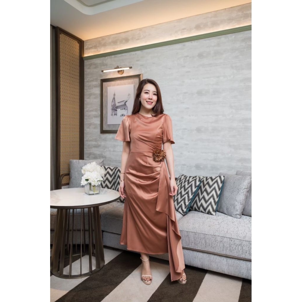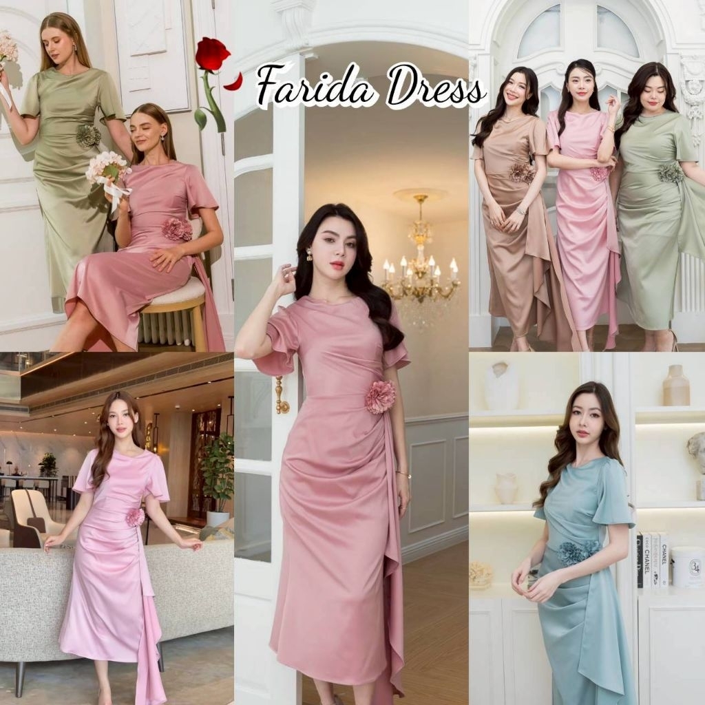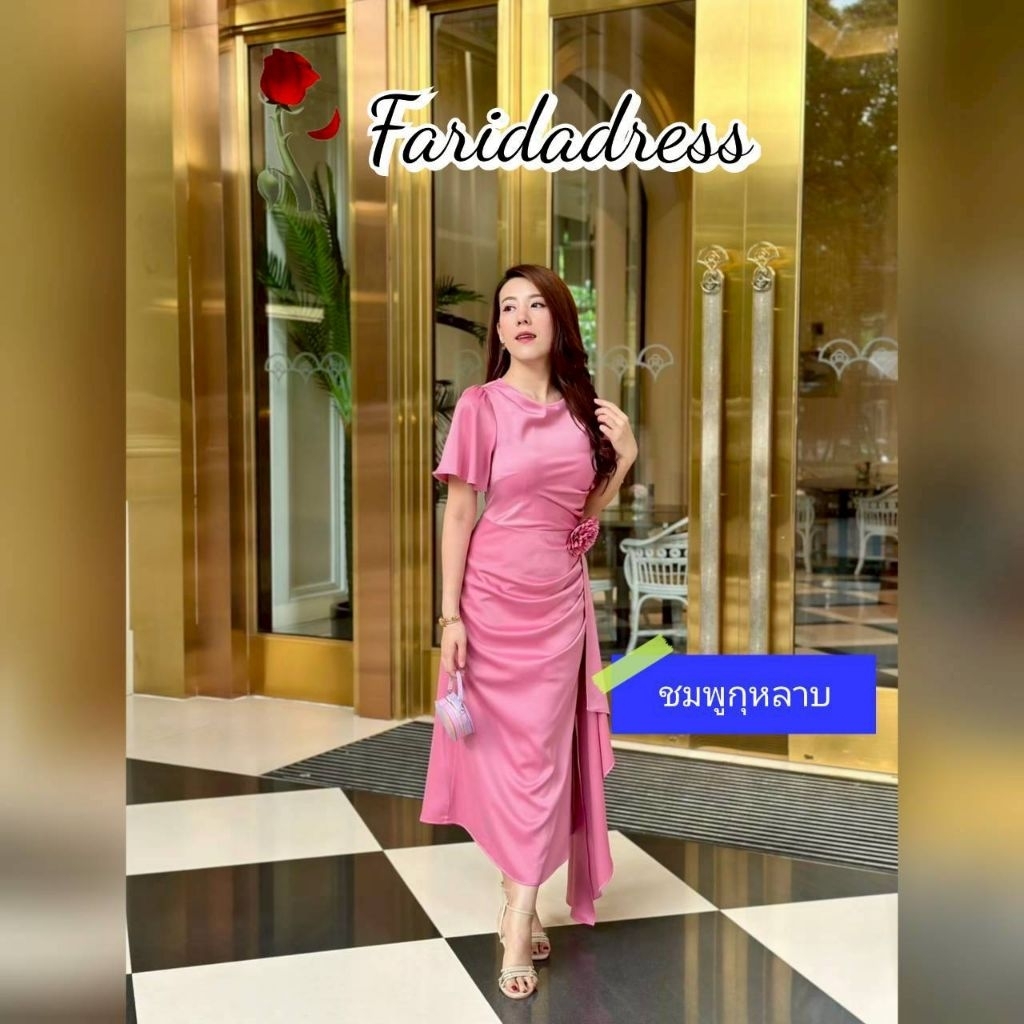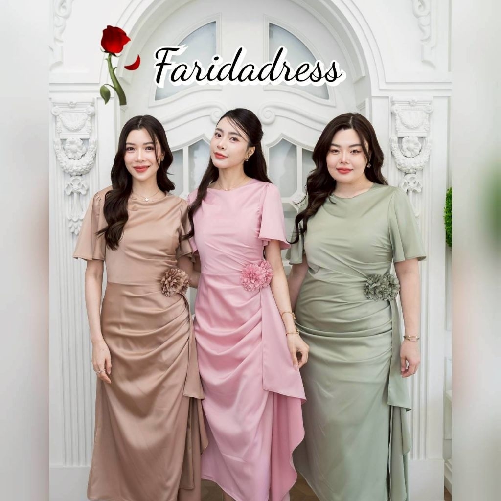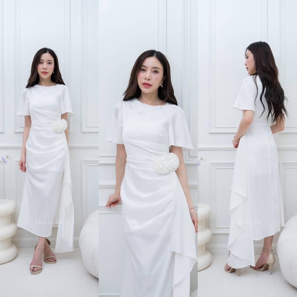 ชุดออกงาน เดรสสวยๆ TP039 ชุดไปงาน ผ้าเครปซาติน คอกลม สไบข้างกระโปรง ซับใน ซิปหลัง เดรสยาว ผู้หญิง เสื้อผ้า Lady Dresses