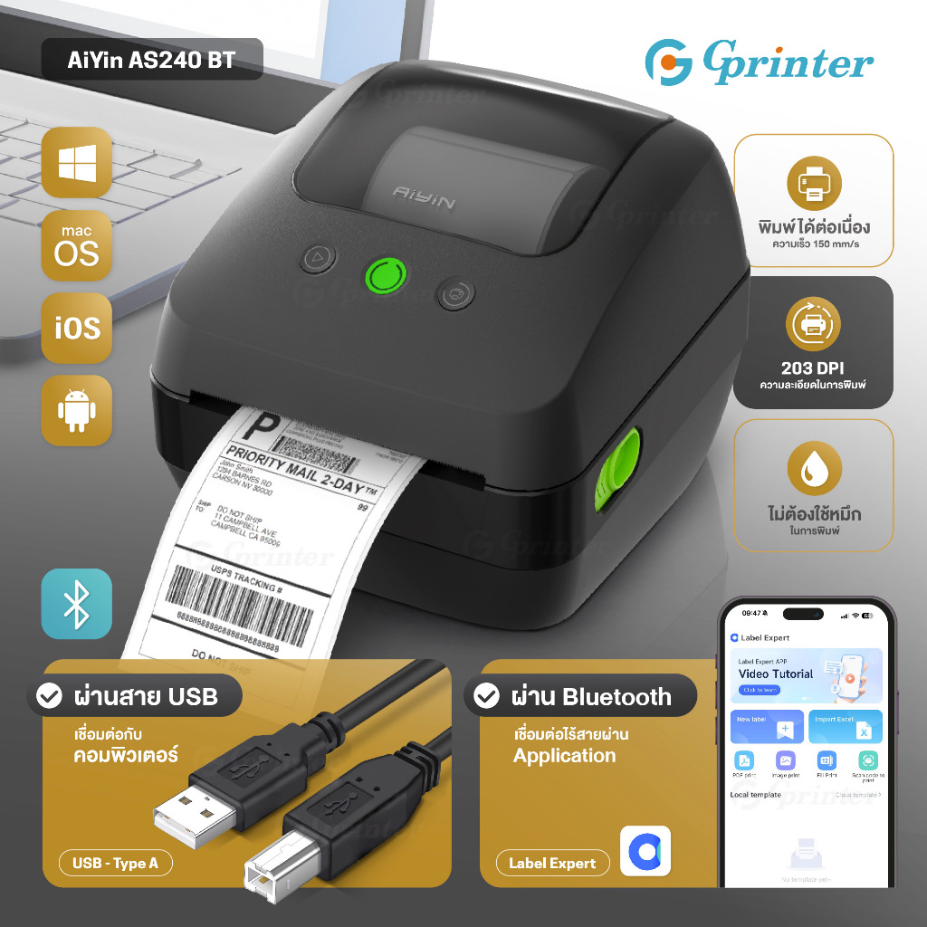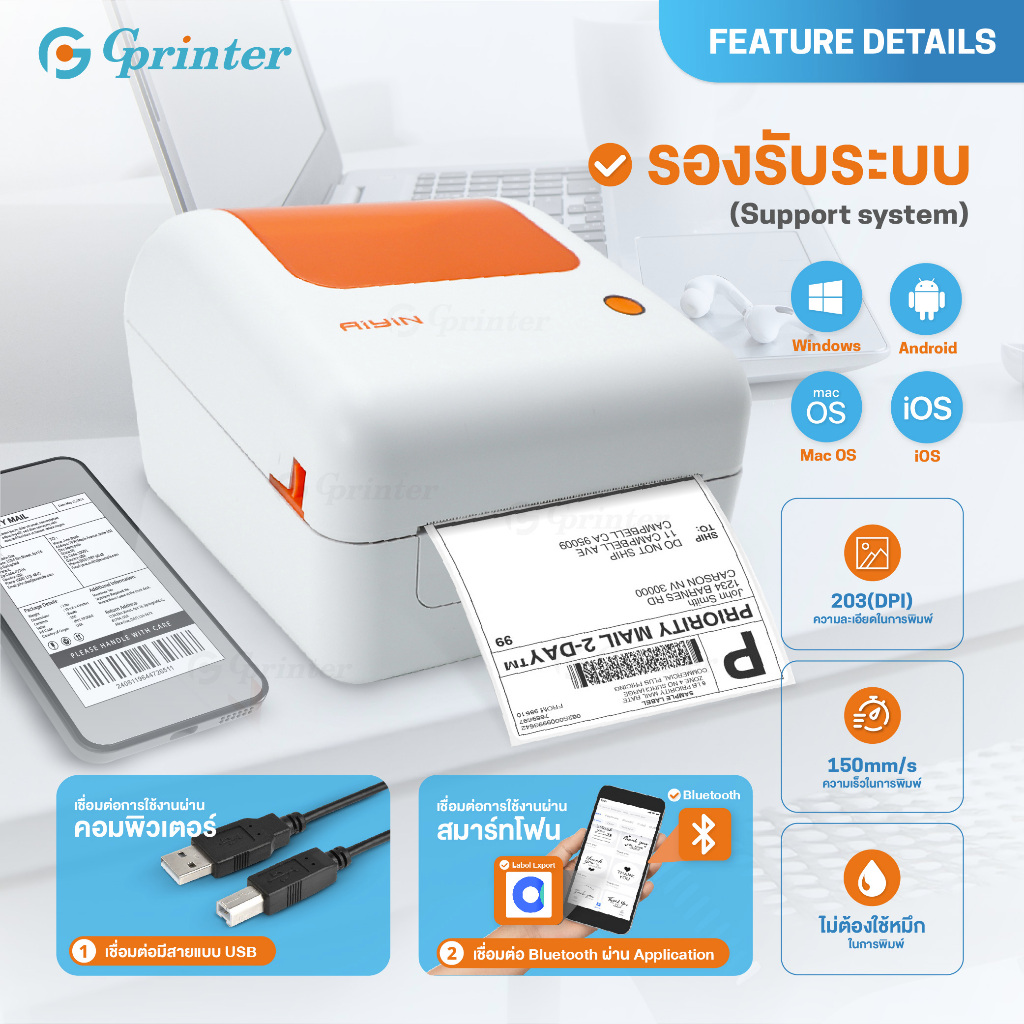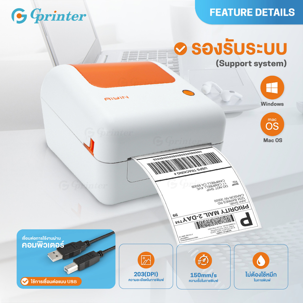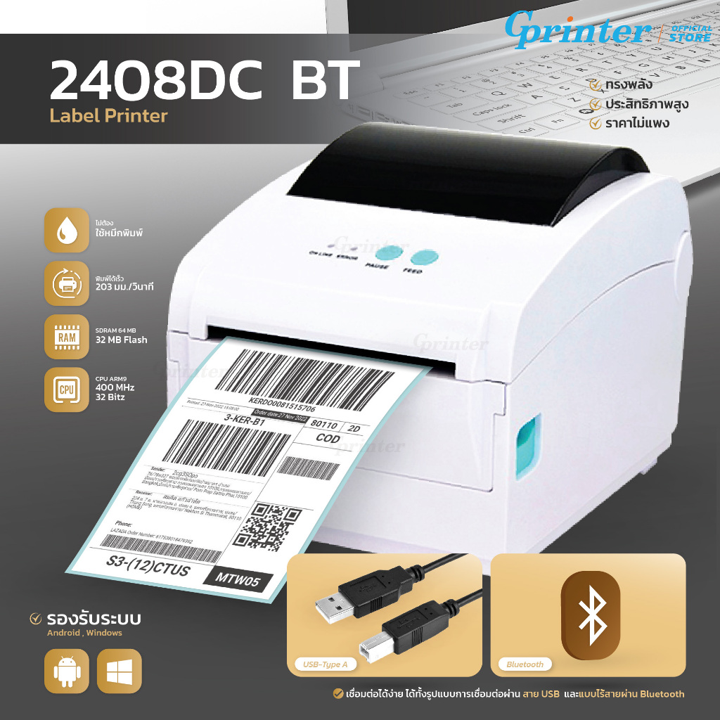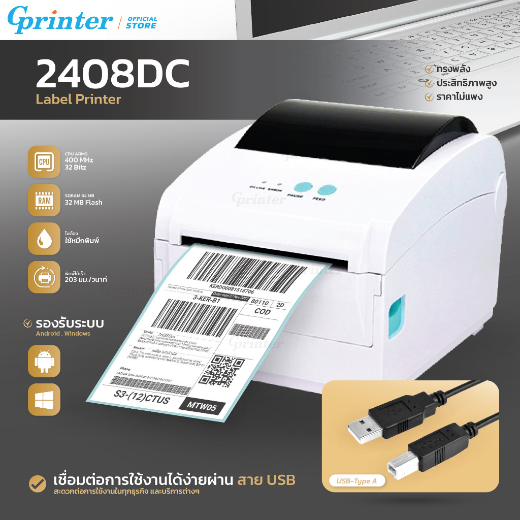 Gprinter เครื่องพิมพ์ฉลากสินค้า GP-1324D เครื่องปริ้นใบปะหน้า พิมพ์ความร้อน ฉลาก บาร์โค้ด