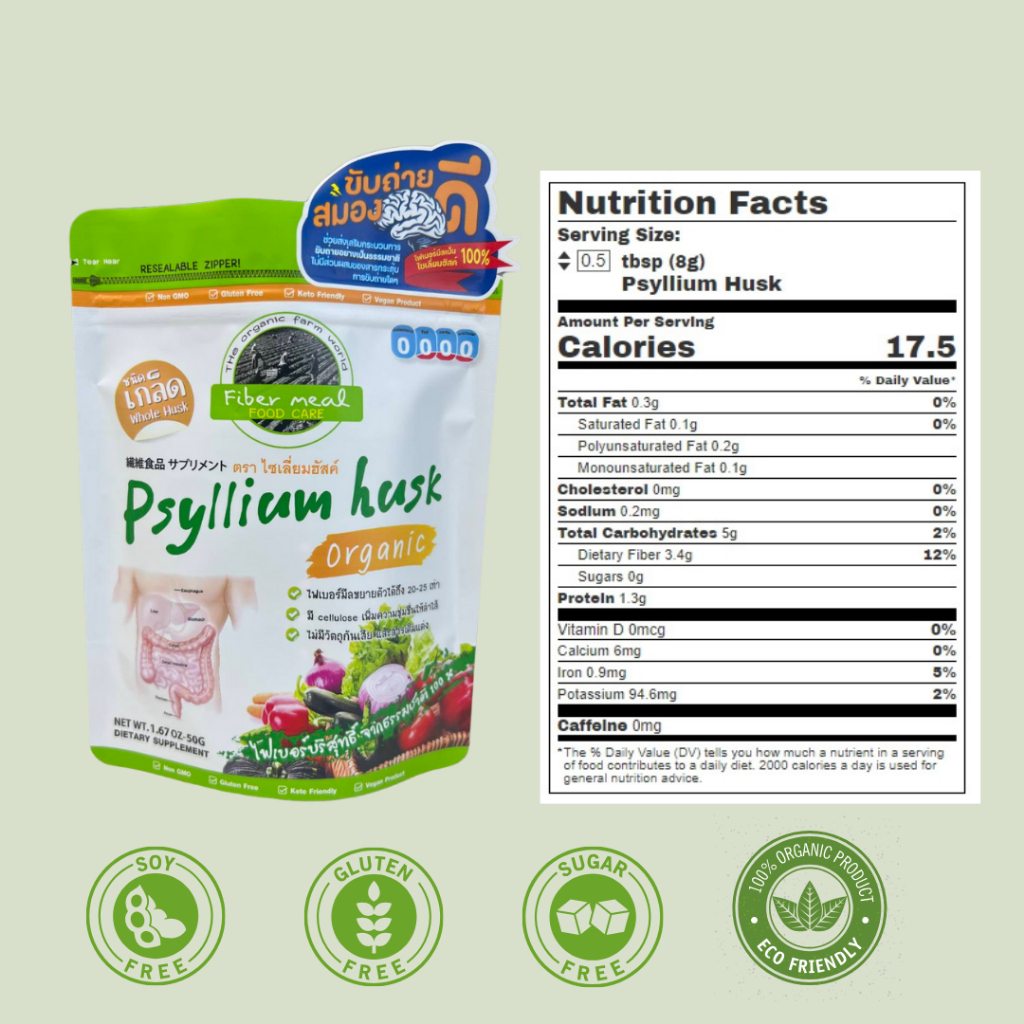 โปรโมชั่น 2 แถม 1 ไซเลี่ยมฮัสค์ ชนิดเกล็ด เกรดออกานิค (Psyllium Husk 50 g. Organic premium quality)